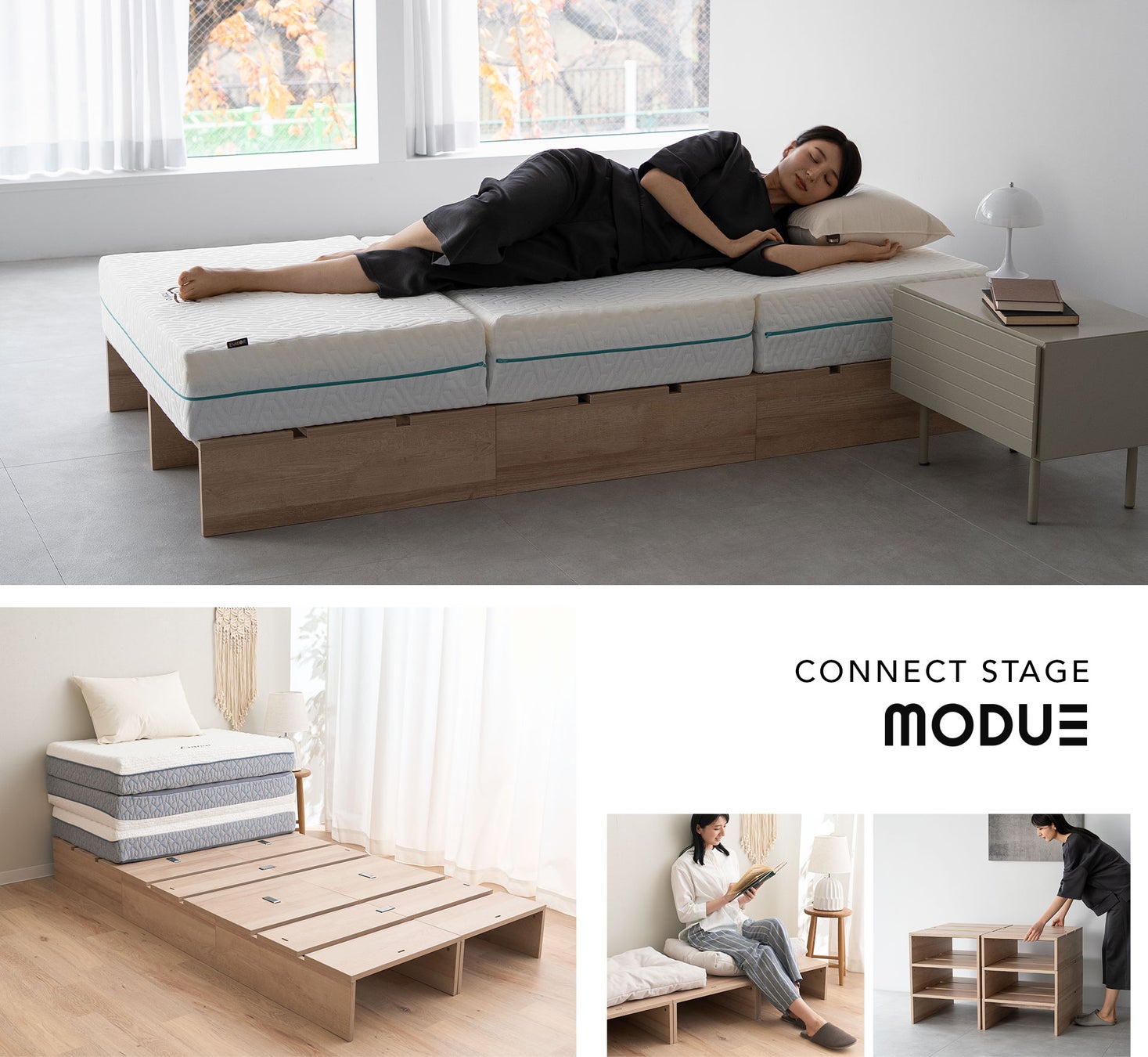 MODUE (モデュー)は、大きくて動かせないベッドを住まいや暮らしに合わせて買い替え続けるという選択から、あなたを解放する新発想のベッドフレームです。