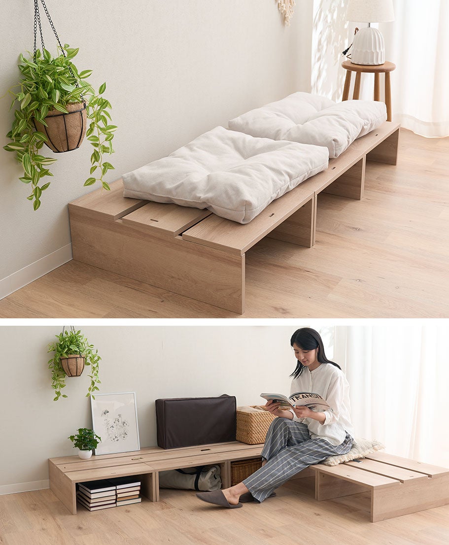並べてつなげれば、ちょっと腰掛けられるリビングベンチに。