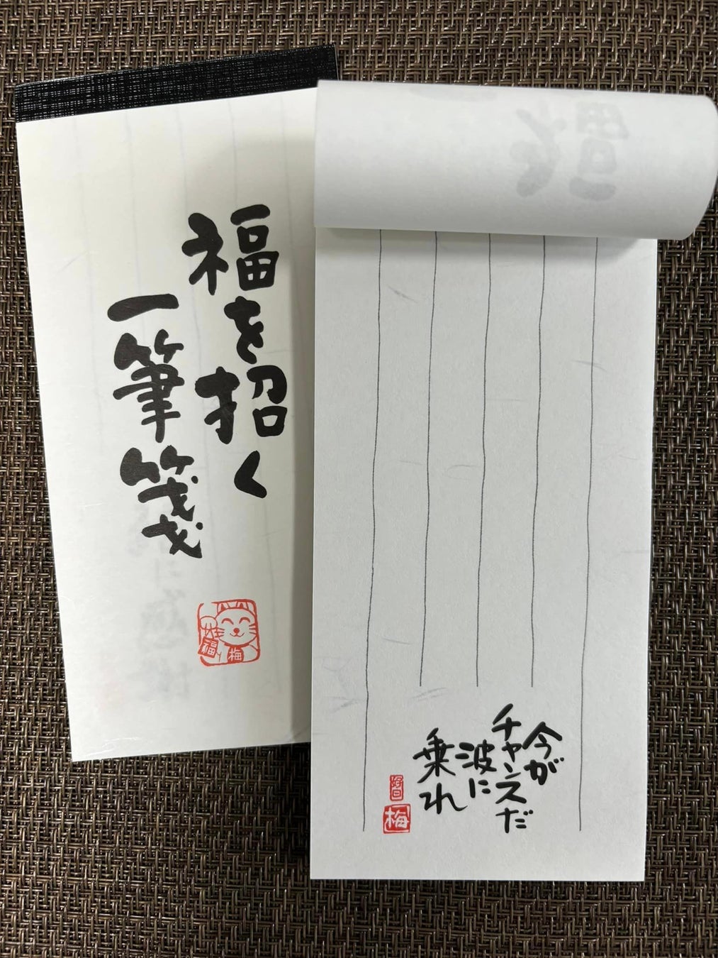 ビジネスシーンや贈り物に添えられる、大切な方が笑顔になるような心がこもった言葉が入った一筆箋。ちょっと一言伝えるツール、バッグにも忍ばせてお礼状にもなります。和紙に梅岡煌隼氏の直筆の書を印刷して作っているので温かさもあります。