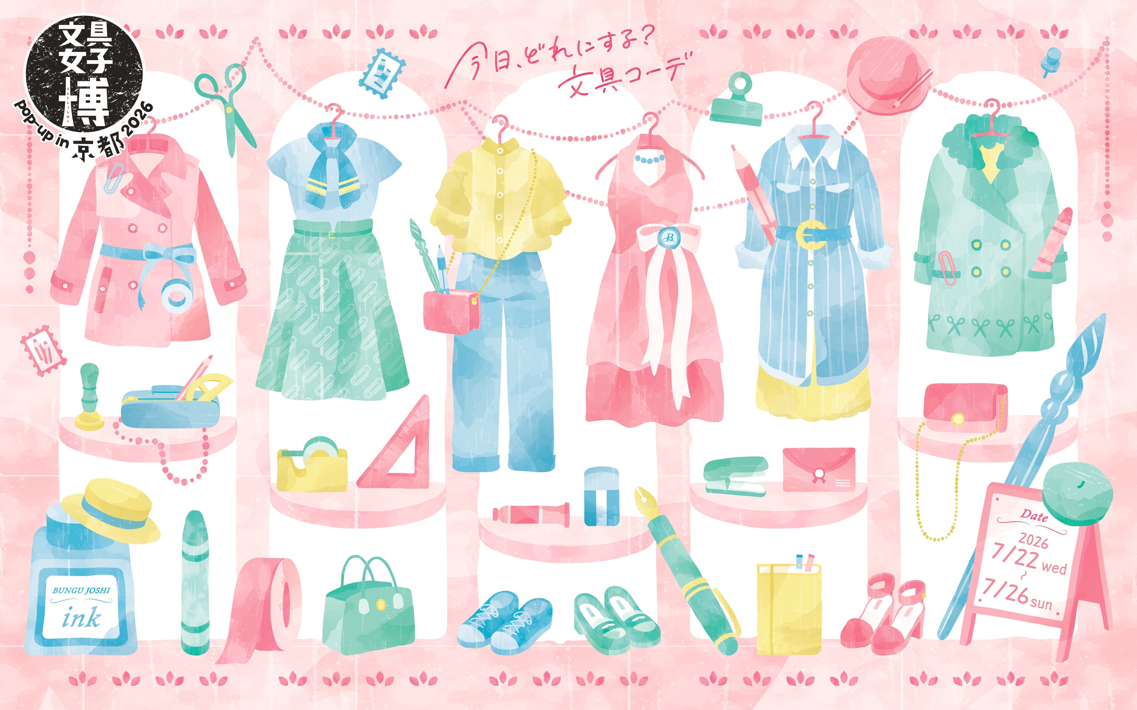 今回の開催テーマは「今日、どれにする?文具コーデ」。毎日のコーディネートを楽しむように、文具を選ぶときめきを感じて欲しいという想いを込めています。会場は各線京都駅直結でアクセス抜群!お仕事や学校帰りにふらっと洋服を試着するような感覚で、気軽にお立ち寄りいただくのにもぴったりです。ぜひこの機会に「文具女子博 pop-up in 京都2026」にご来場ください。