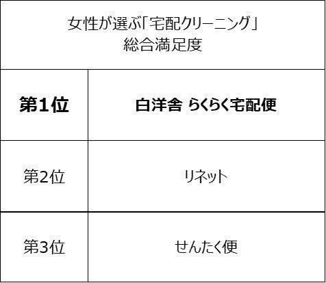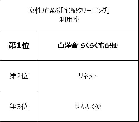 ◆女性が選ぶ「宅配クリーニング」ランキング、利用率1位は「白洋舎のらくらく宅配便」