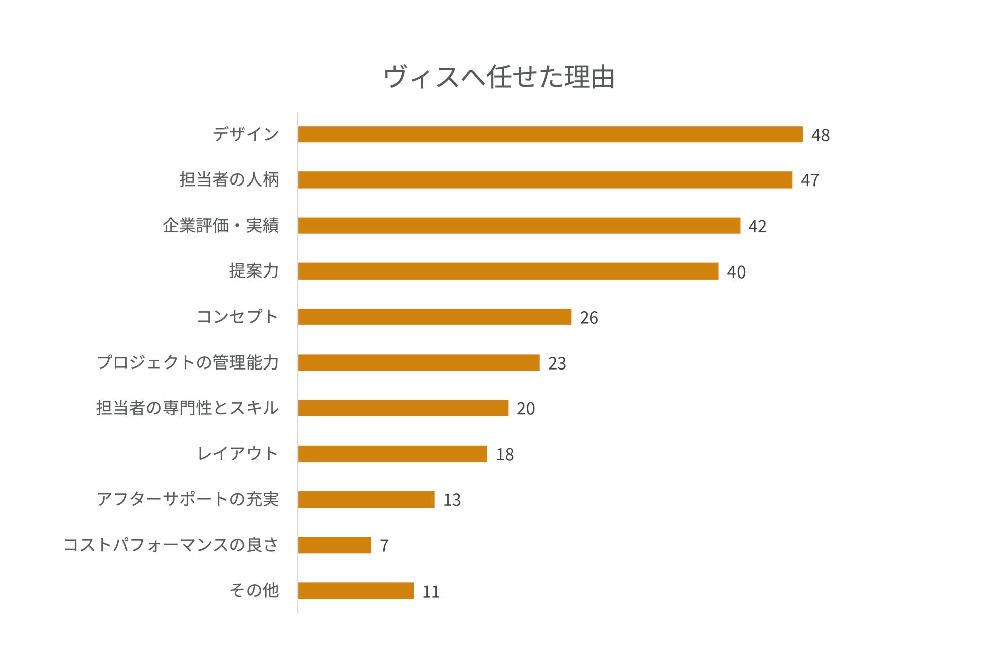 「デザイン」が最も多く、次いで「担当者の人柄」「企業評価・実績」という結果になりました。