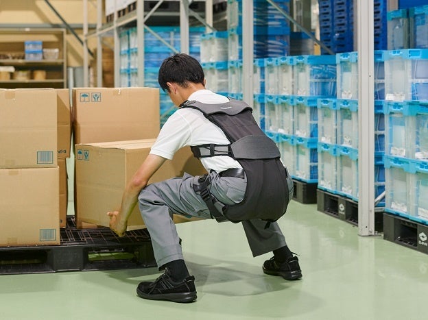 当社独自の空気圧式の人工筋肉を用いることで持ち上げ作業をアシスト。軽量かつ柔軟性を実現したサポートウェアです。