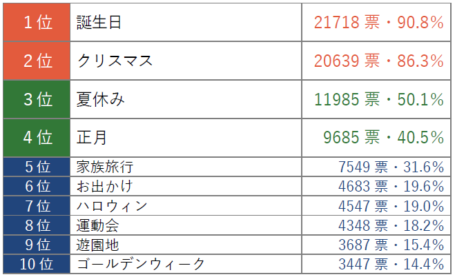 - 「一年の中で子どもが楽しみにしているイベントランキング」TOP5