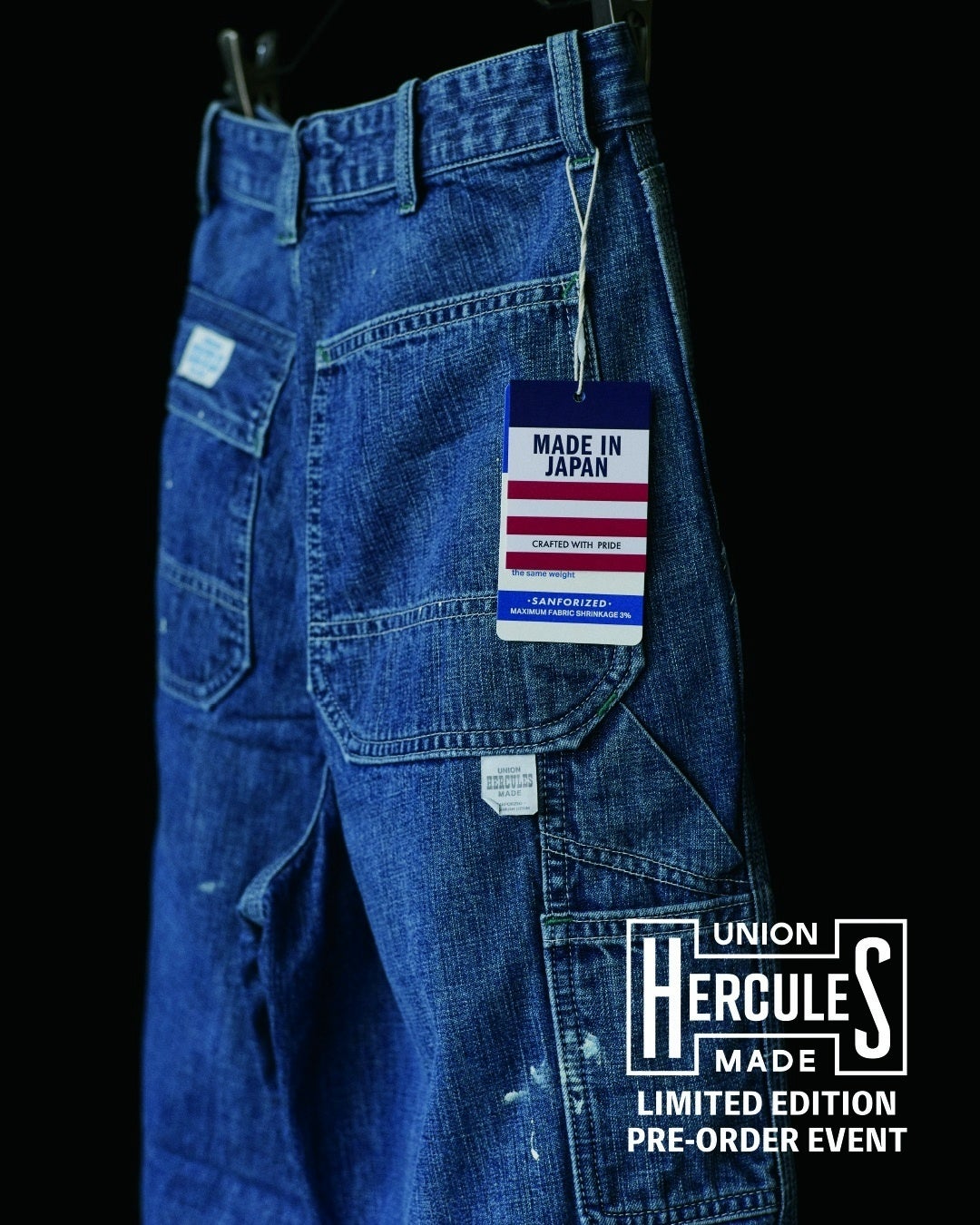 【UNION HERCULES MADE】 (ユニオン ヘラクレス メイド) はジョンブル監修によるヴィンテージワークウェアブランド HERCULES を岡山の高い加工技術と職人の手によるヴィンテージ風ダメージ加工を施しアップデートしたデニムブランドです。