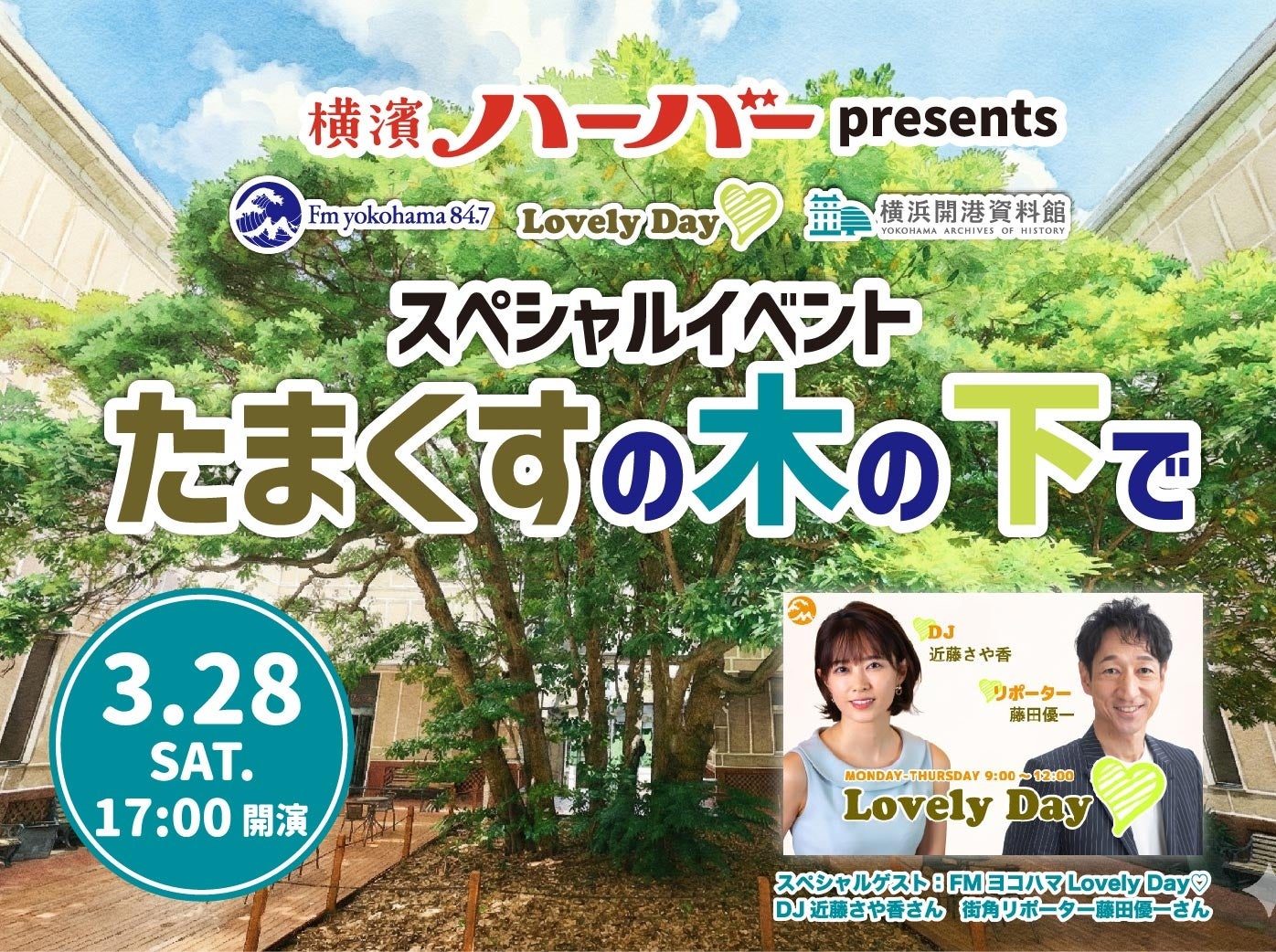 FMヨコハマ「Lovely Day♡」コラボ企画「横濱ハーバーpresents スペシャルイベント「たまくすの木の下で」 “たまくすデッキ” 初のイベント開催!【横浜開港資料館】