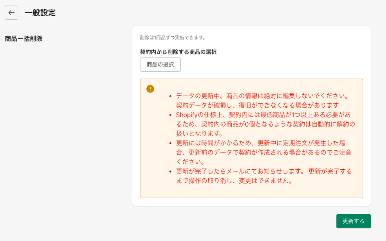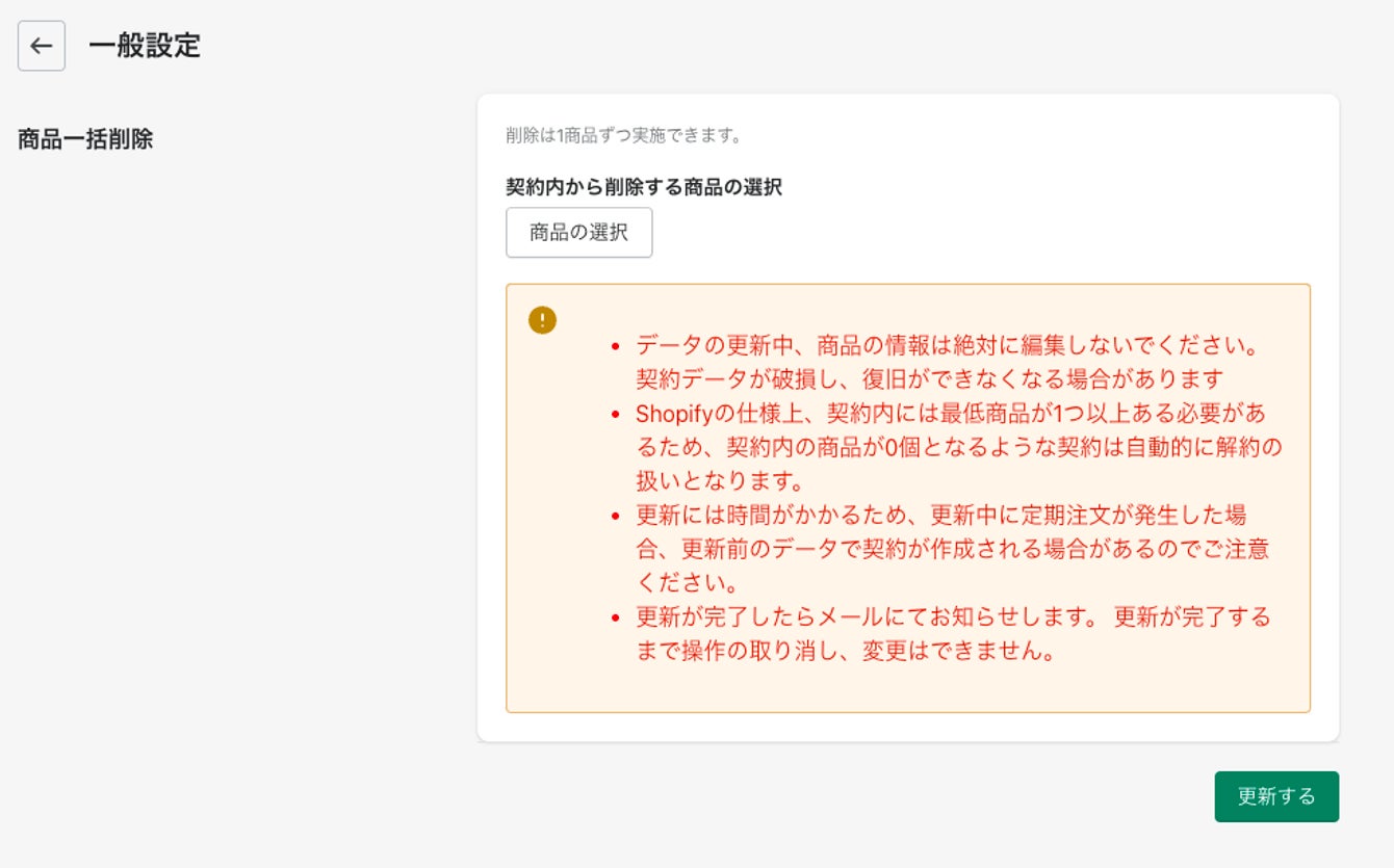 更新には時間がかかるため、更新中に定期注文が発生した場合、更新前のデータで契約が作成される場合があるのでご注意ください。