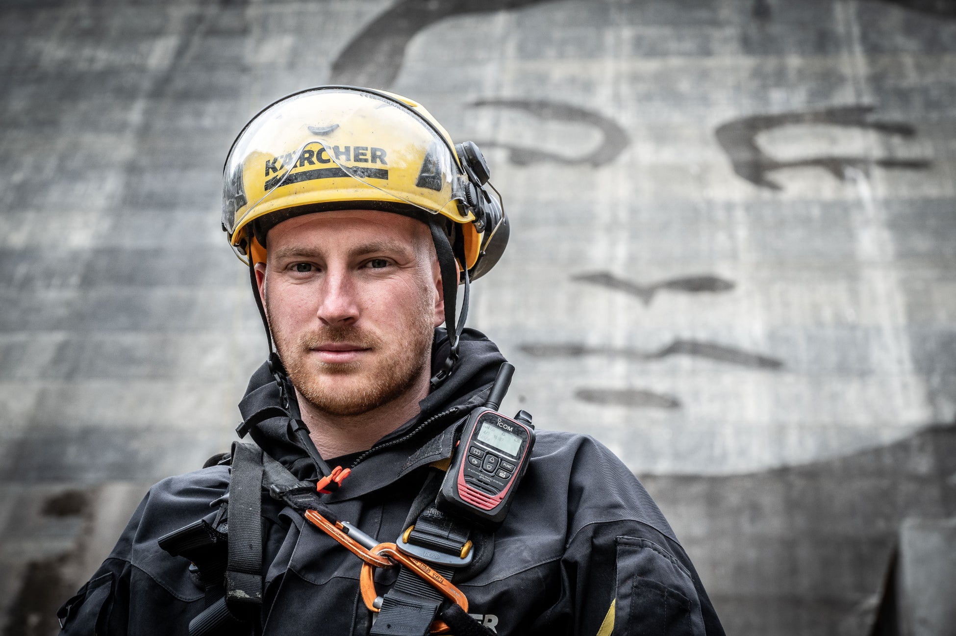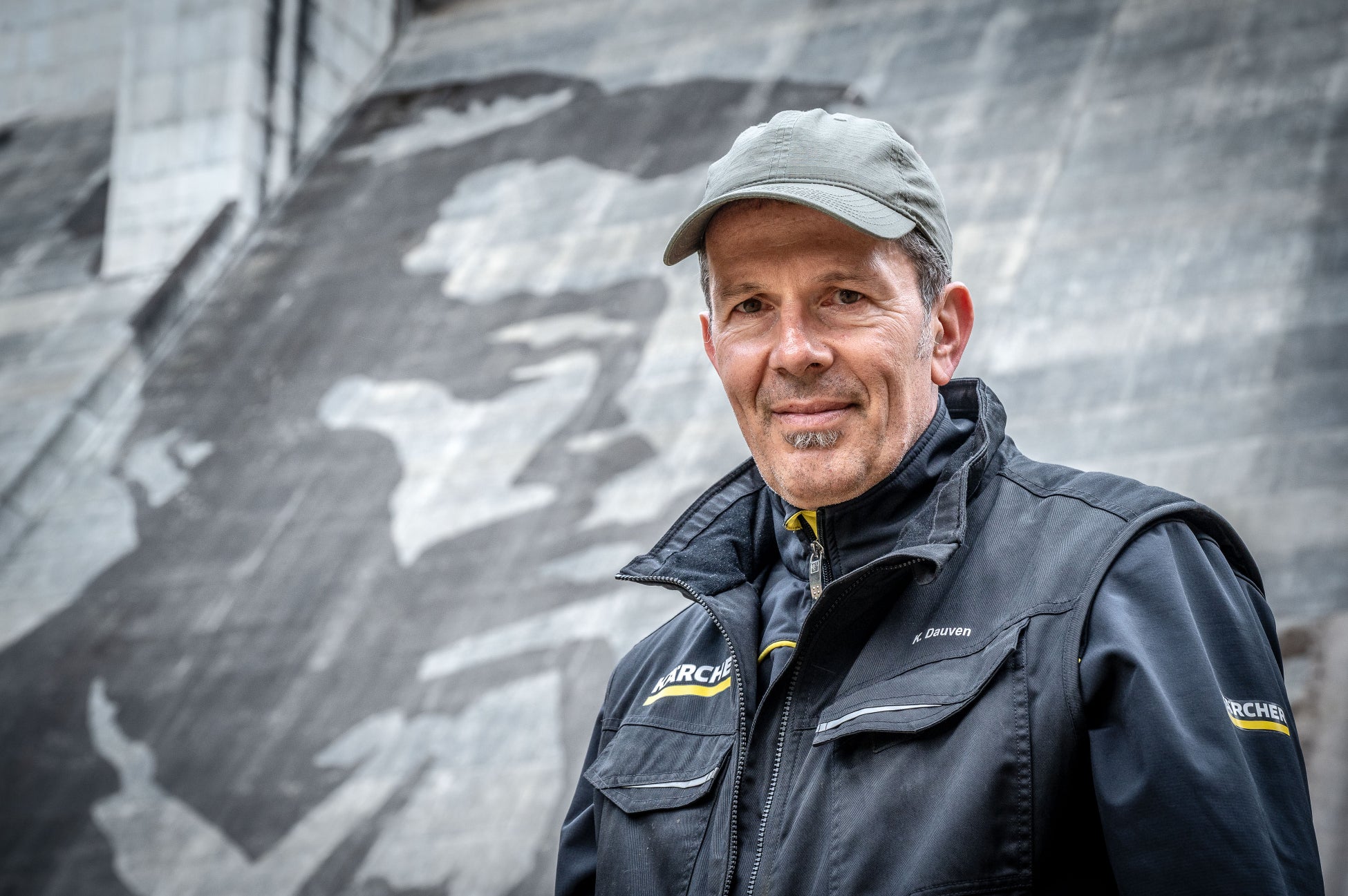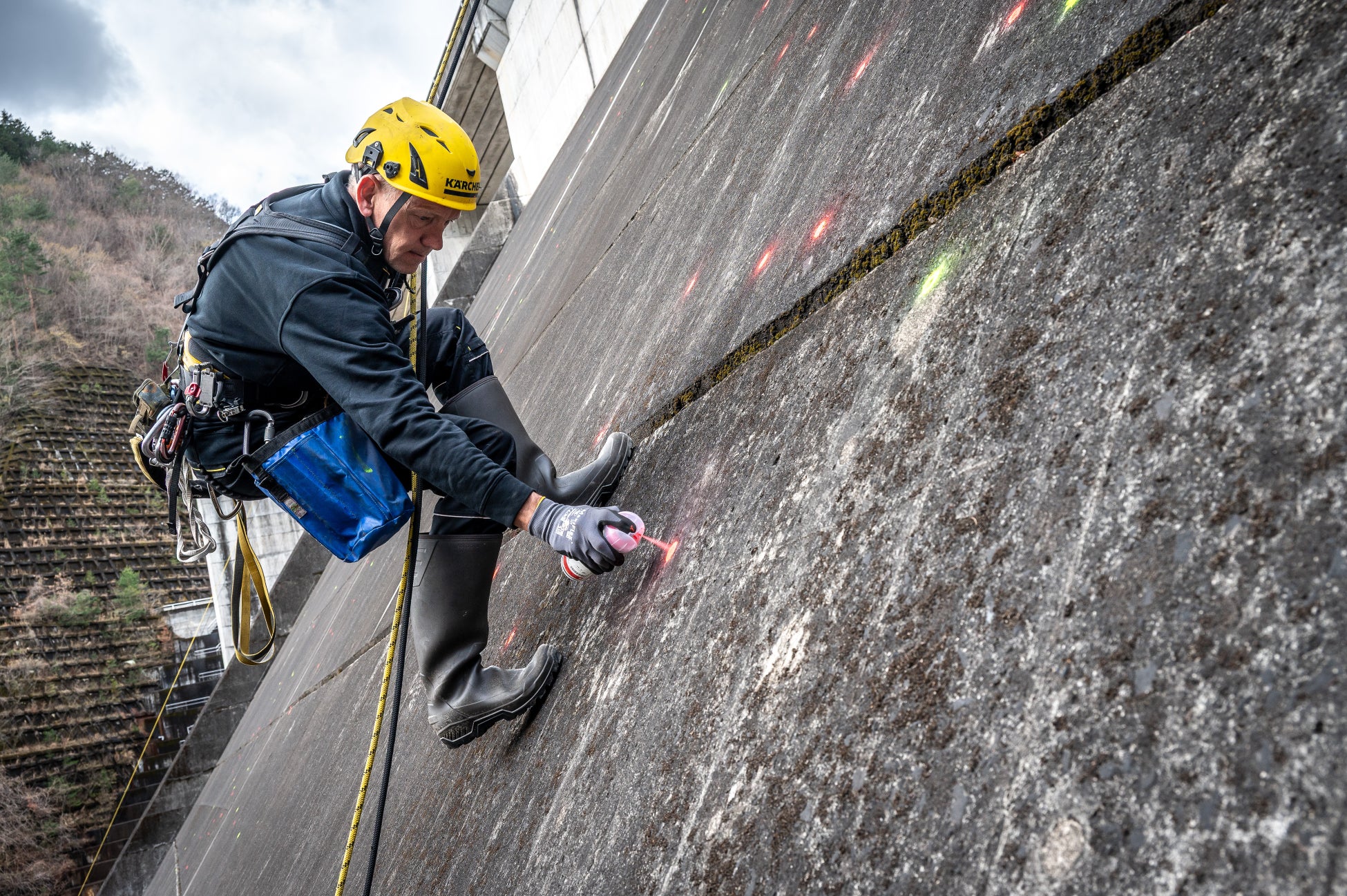 松田川ダムでのリバース・グラフィティプロジェクトが遂に完成しました。アーティストのKlaus Dauvenと共に素晴らしい成果を上げられたことを、チーム一同誇りに思っています。今回の作業で最も困難だったのは、巨大な壁面にモチーフの輪郭を描く工程でした。2,000 点以上の測量ポイントを正確に繋ぎ、アーティストが意図した繊細な「顔の表情」を忠実に再現することに細部までこだわり抜きました。苦労の甲斐あって、最終的な仕上がりは息をのむほど美しく、見事なものとなっています。
