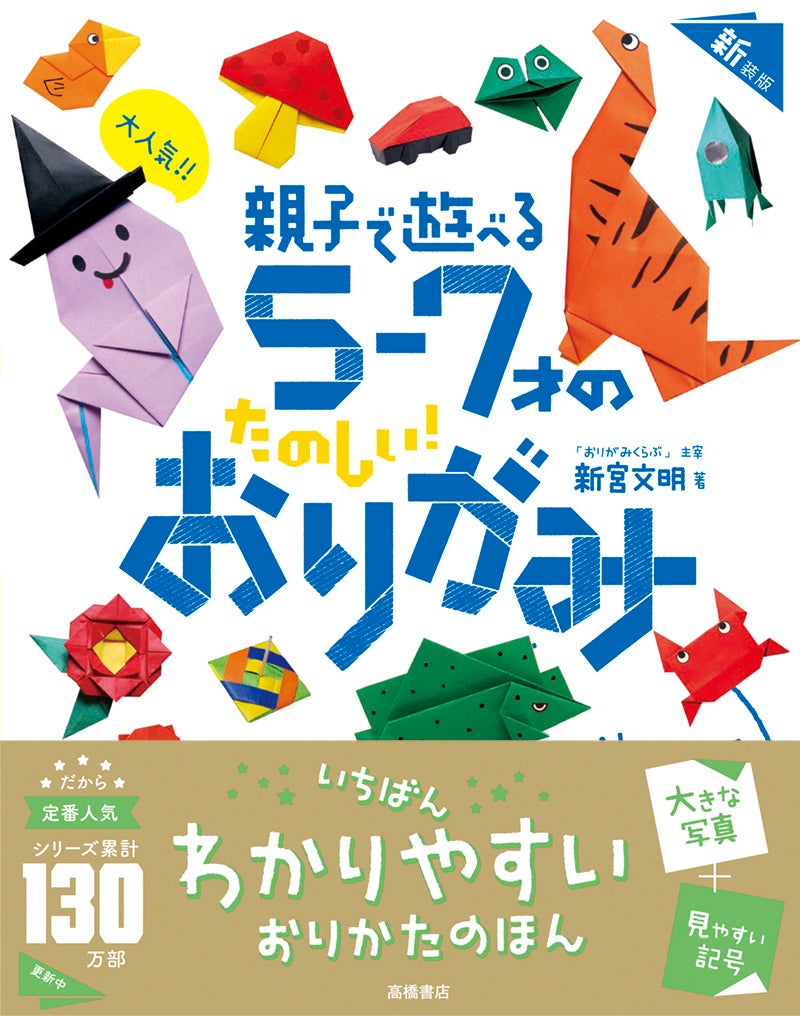 人気のおりがみ作家、新宮文明氏の考案したおりがみを収録しています。かんたんに折れて、子どもたちに人気の動物や花、食べ物や服、折って遊べる作品や、行事やイベントに飾れる作品を厳選しました。