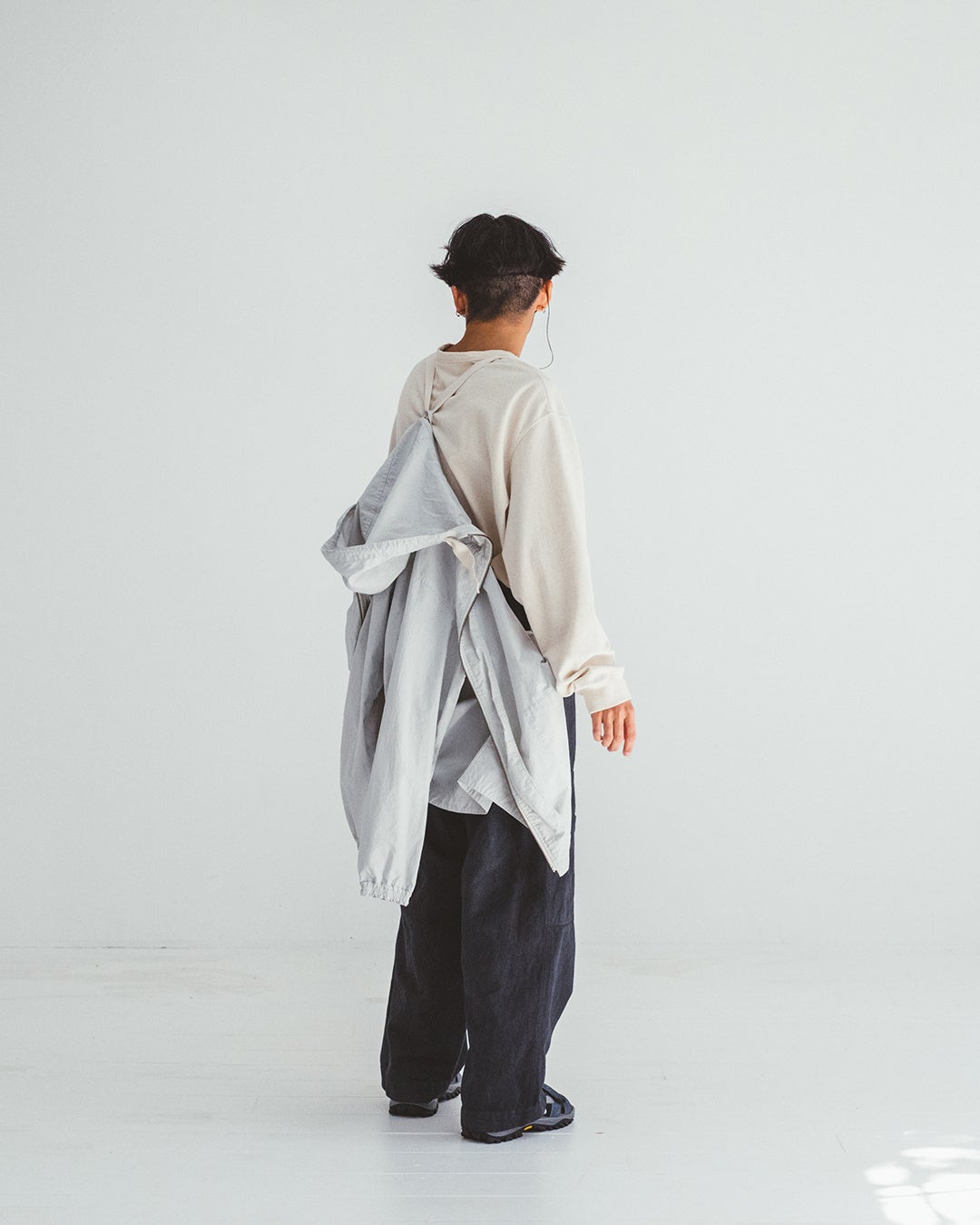 服や荷物を詰め込み、旅に出る。自由に様々な場所に行き交うことができる日常を、より心地良く、より心躍るものになればと、新しい素材選びや染めによる、服づくりを行いました。