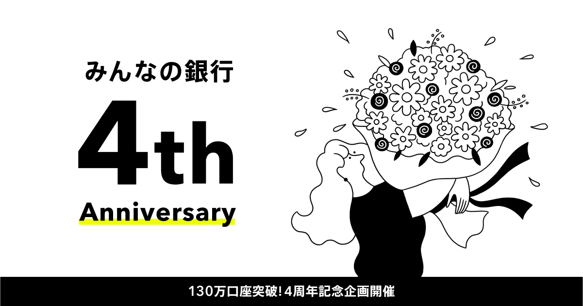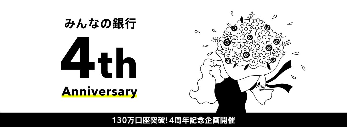 株式会社みんなの銀行(取締役頭取 永吉 健一、以下「みんなの銀行」)は、日本初のデジタルバンクとしてサービス提供を開始し、2025年5月28日で4周年を迎えました。おかげさまで130万口座を突破し、日本全国の多くのお客さまにご利用いただいています。