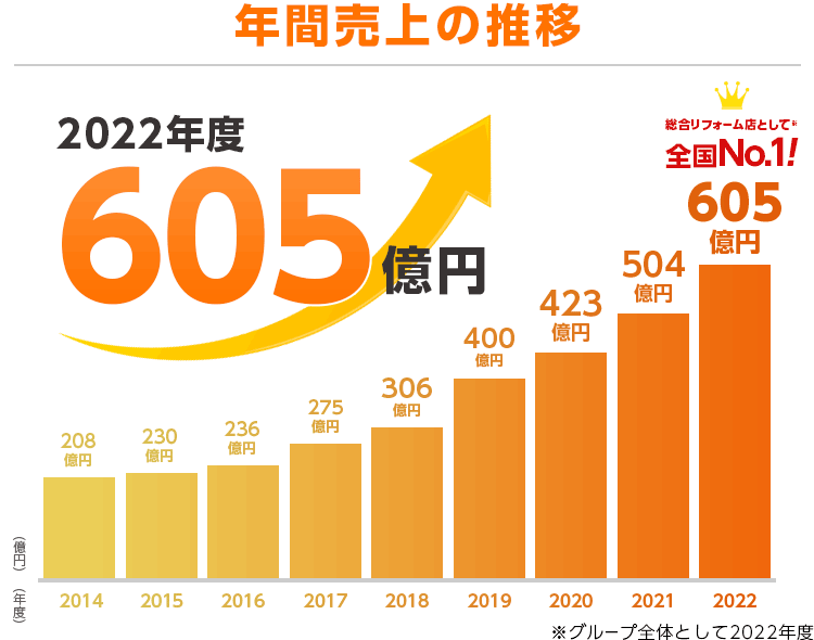 総合リフォーム会社として全国に100店舗以上を展開する当社。業界売上No.1*の実績のもと高い知名度を確立しています!