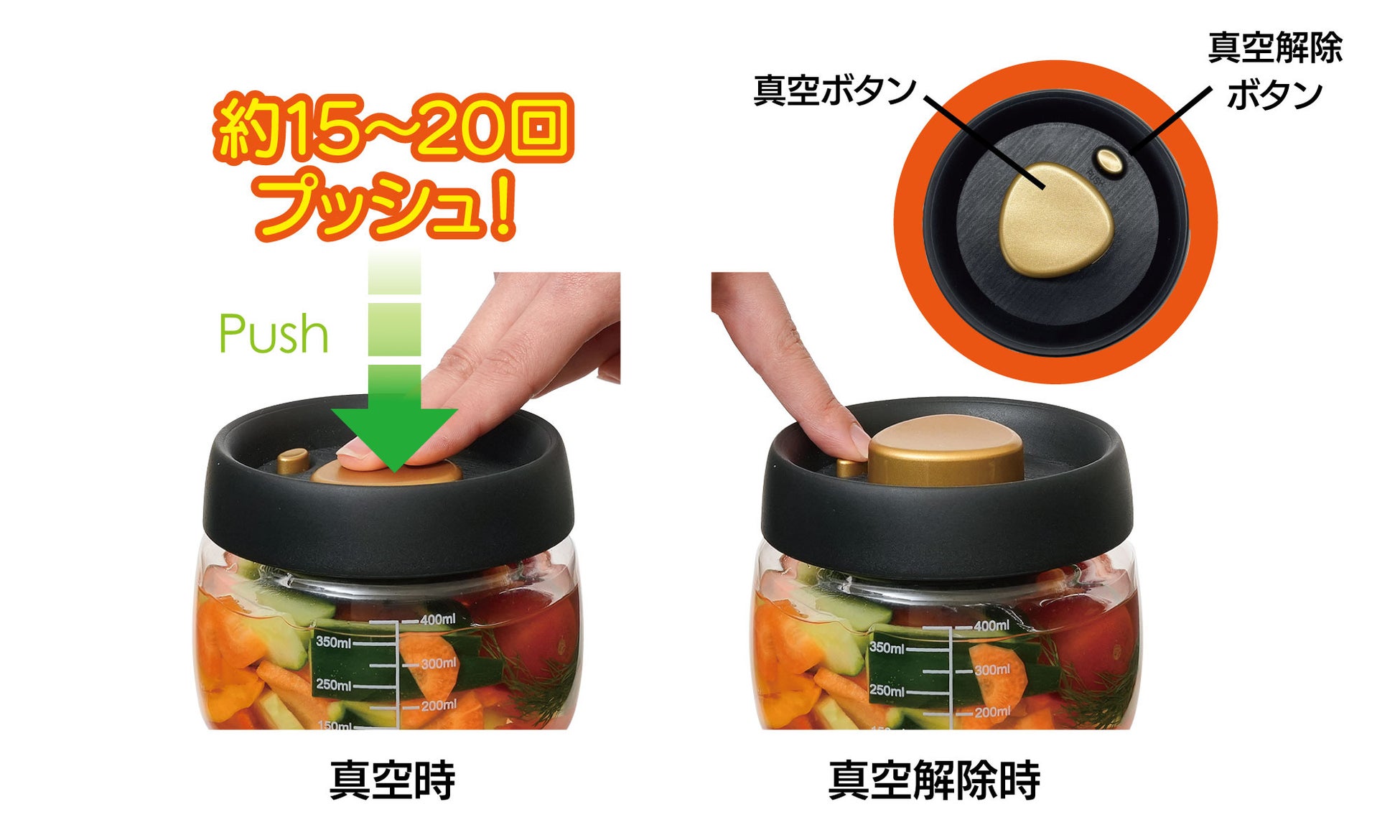 調理と保存を一緒に!押すだけで簡単に空気が真空状態に!