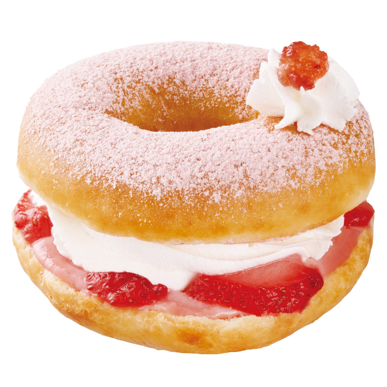 オリジナル・グレーズド®に、あまおう苺のカットをのせ、