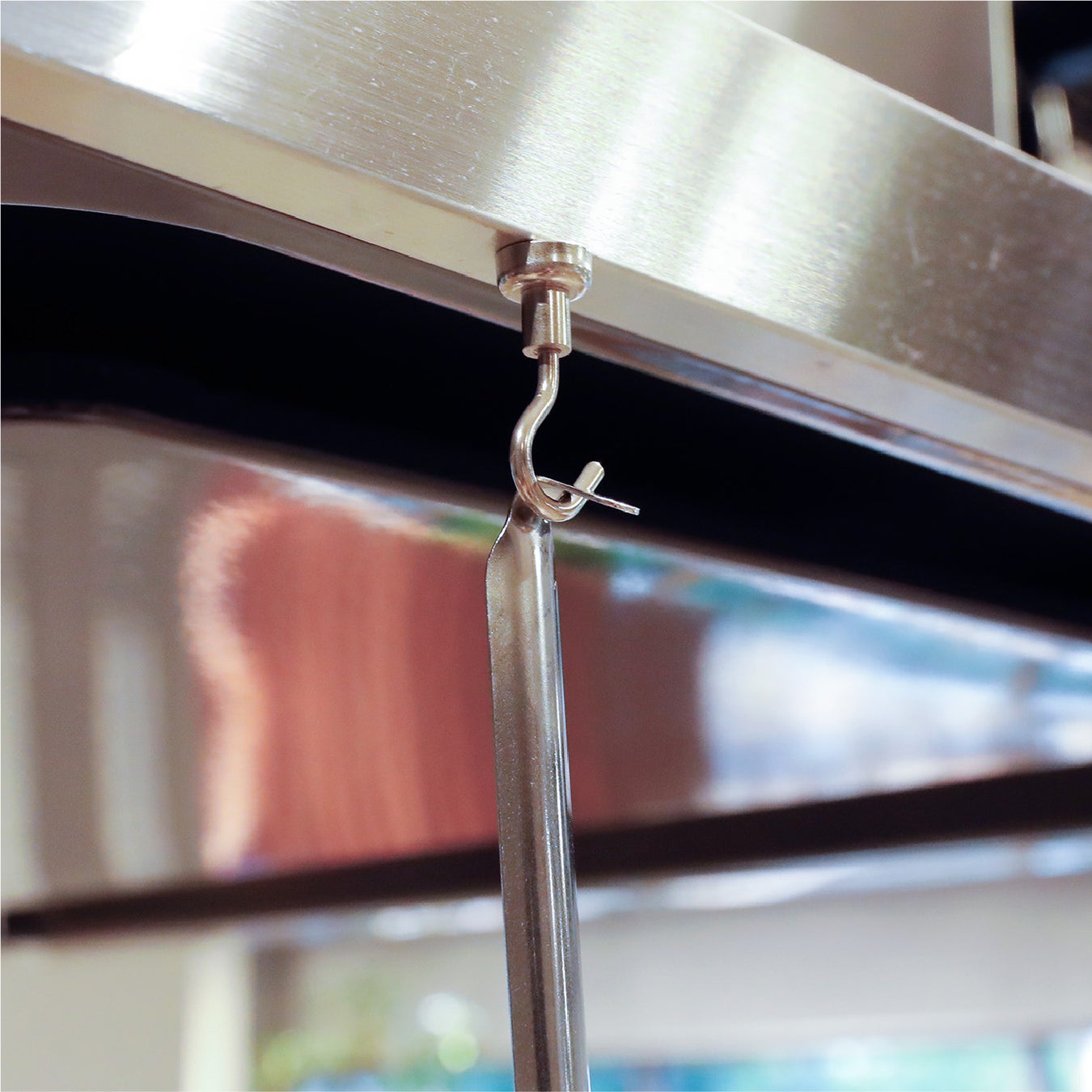 先端を曲げているため、調理中は鍋のフチに一時的に掛けたり、フックに掛けて収納出来ます。