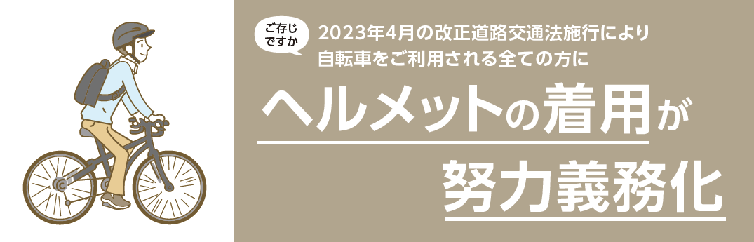 2023年4月1日より改正道路交通法が施行され、年齢を問わず自転車をご利用される全ての方にヘルメットの着用が努力義務化されます。コメリでも自転車用ヘルメットをご用意しておりますので、自転車をご購入の際には合わせてご検討ください。