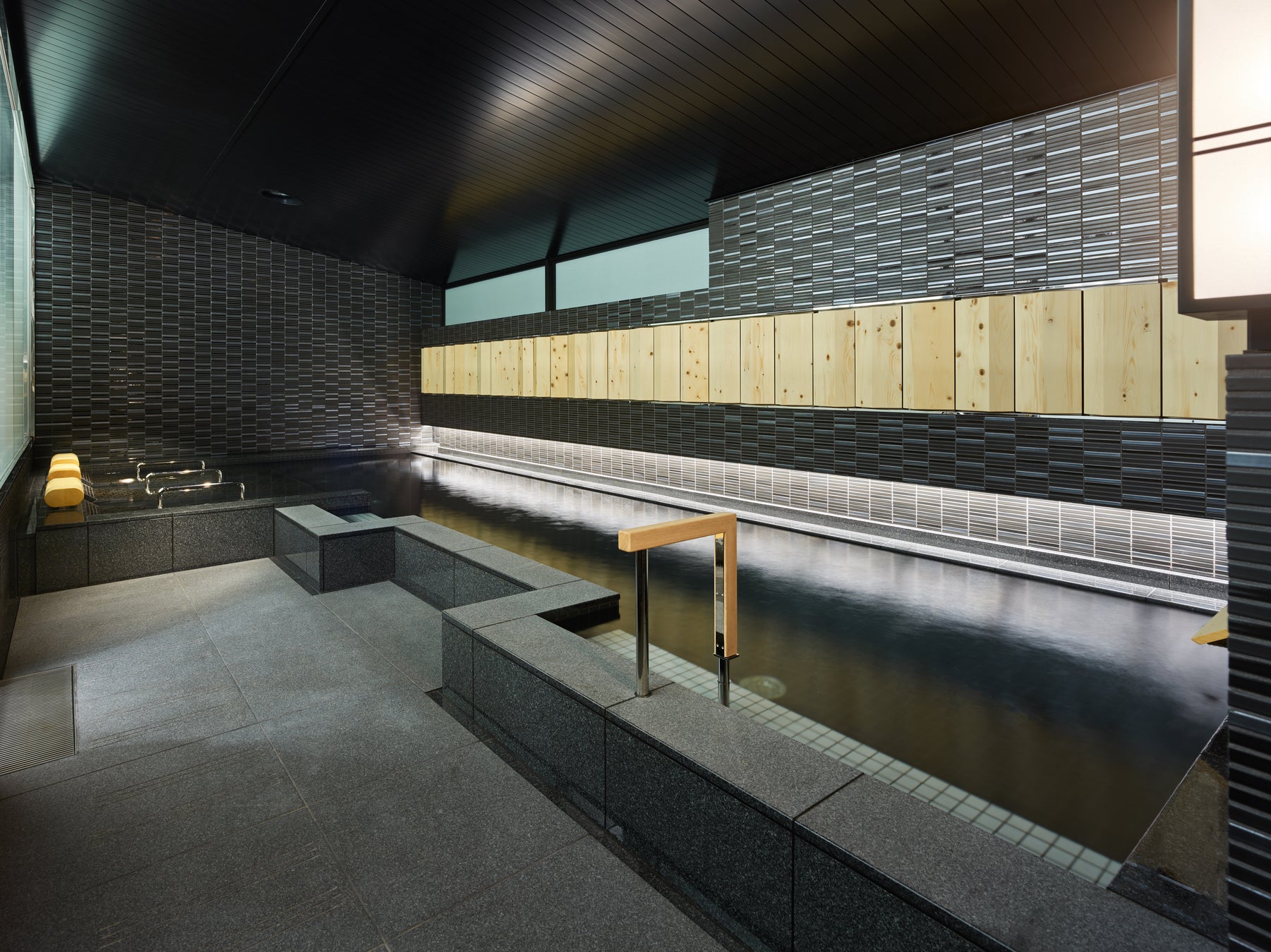 館内はモダンな中に「江戸文化で栄えた日本橋らしさ」をミックスし、日本橋の「粋」を体感できるデザインを随所に取り入れています。贅沢に寛げる空間は、細部までこだわり、心地良さを追求。大浴場には寝湯の枕と手すりには無垢の檜を、壁には高野槙(こうやまき)を配することで木の香りが漂い、都心の喧騒から離れ、ゆったりとした時間をお過ごしいただけます。