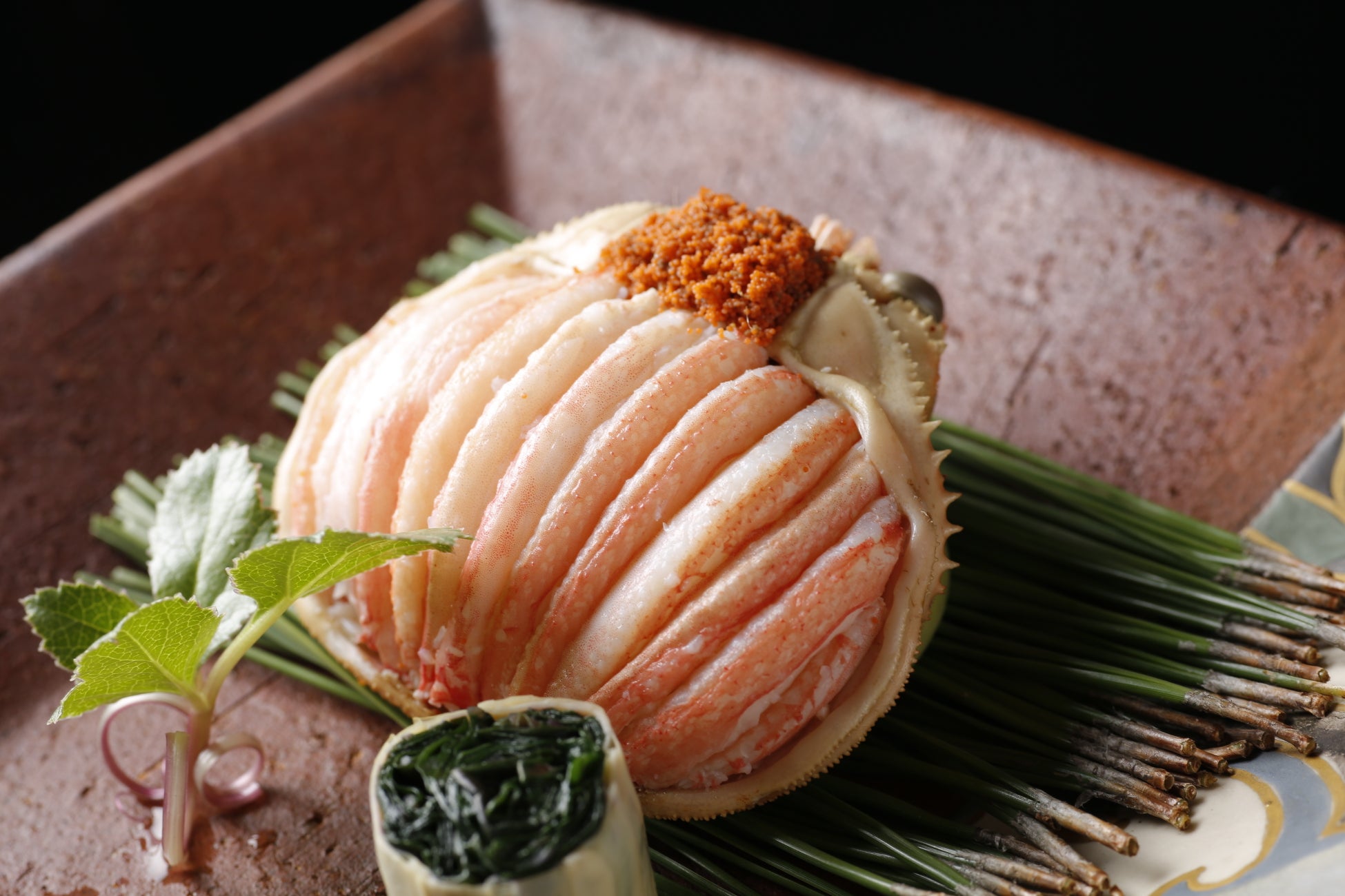 加賀の港に水揚げされた新鮮な蟹を、茹で、焼き、蒸し、甲羅焼きなど多彩な調理法でご提供。香箱蟹やずわい蟹をはじめとする冬の恵みを、料亭ならではの美しい盛り付けとともにお楽しみください。