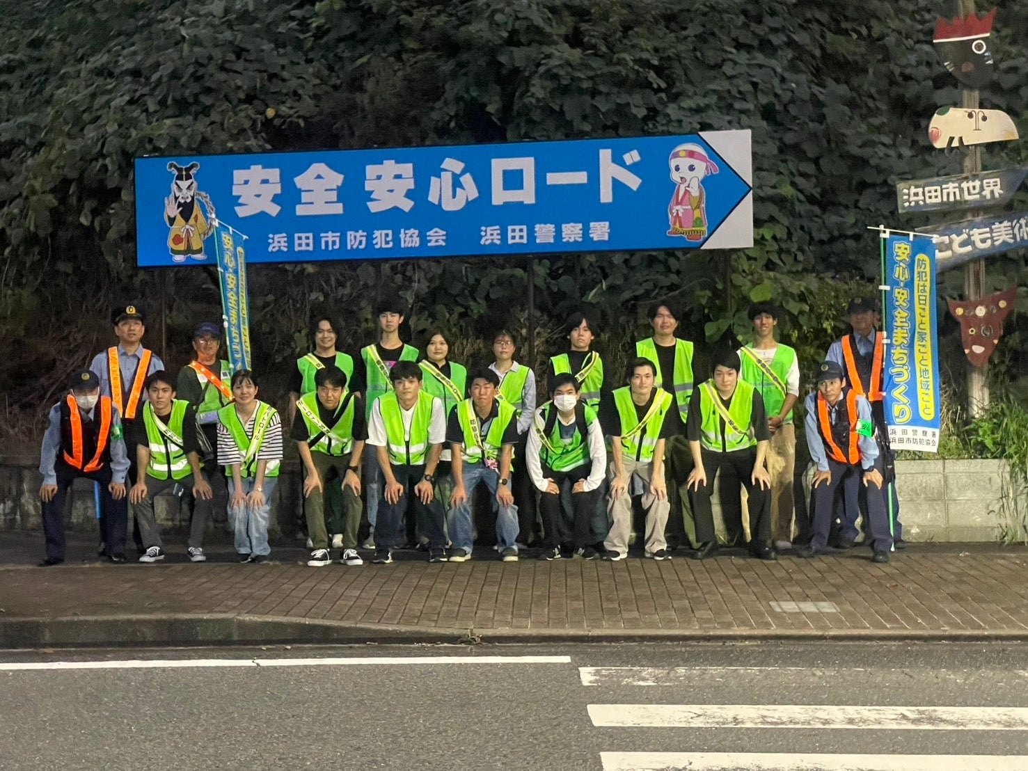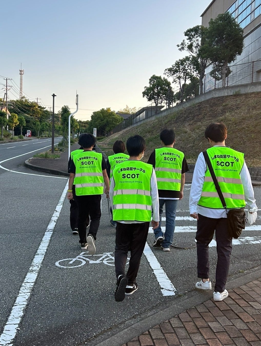 2009年10月に発生した平岡都さんの事件をきっかけに、「同じ悲劇を二度と繰り返さない」という思いから結成。浜田の安心・安全を守ることを目的に、学生が中心となって活動しています。毎週火曜・金曜の18時30分から、大学周辺でのパトロールやごみ拾い、「はまだ灯」の運営などに積極的に取り組んでいます。