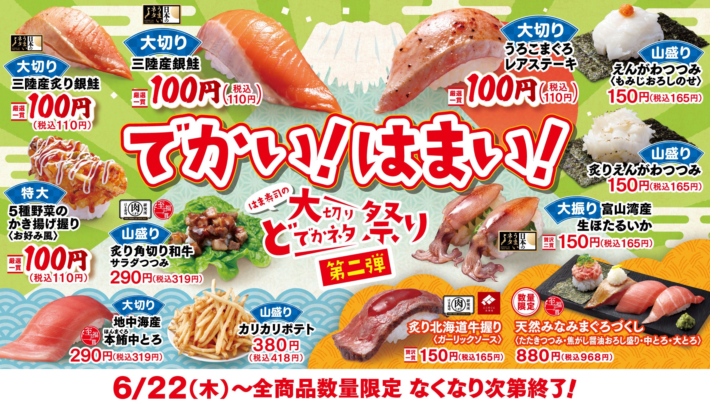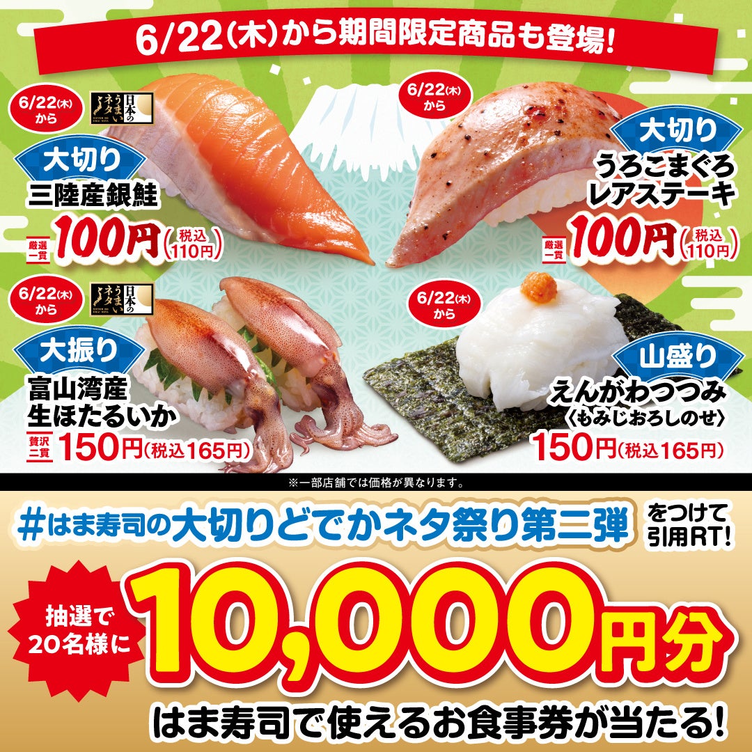 ぜひこの機会に、お近くのはま寿司で「はま寿司の大切りどでかネタ祭り」第2弾を引き続きお楽しみください。
