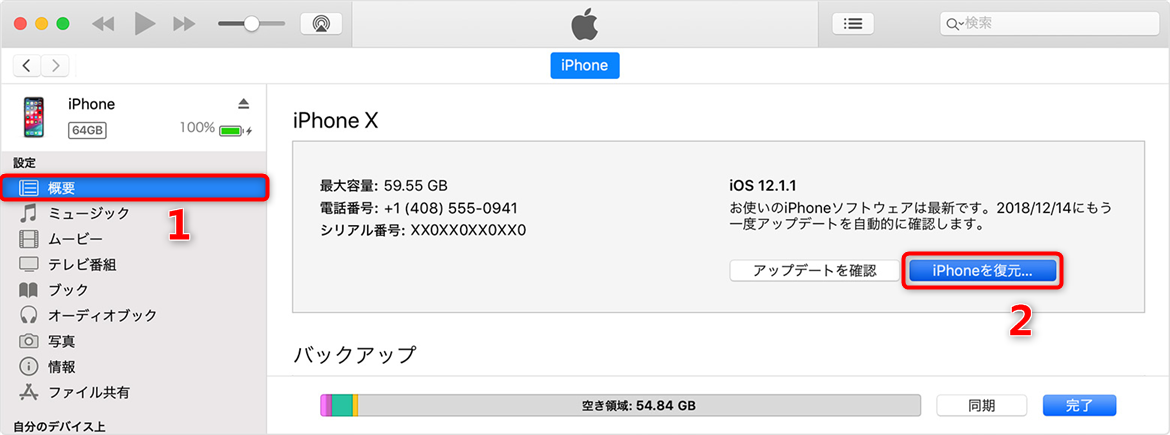 Step3:「概要」を開いて、「iPhoneを復元」をクリックします。