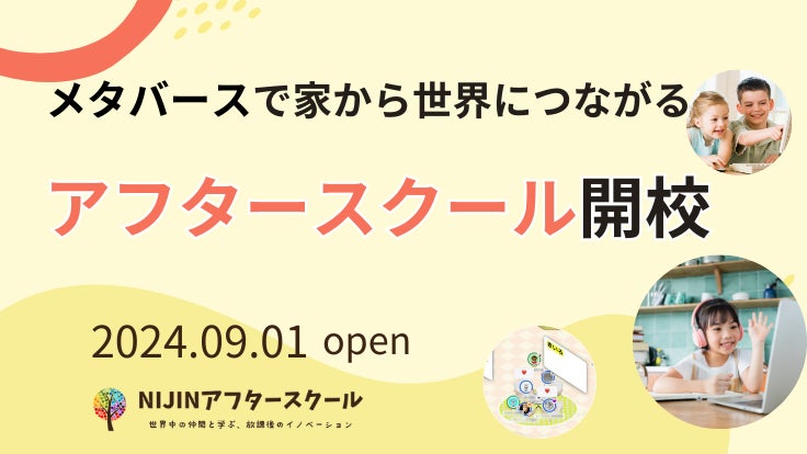 放課後ひとり寂しく過ごす小中学生の子どもを、メタバースで救いたい。株式会社NIJIN(本社:東京都江東区、代表取締役:星野達郎)が2024年9月1日(日)、小中学生を対象に、家から世界と繋がるメタバース学童「NIJINアフタースクール」を開校いたします。