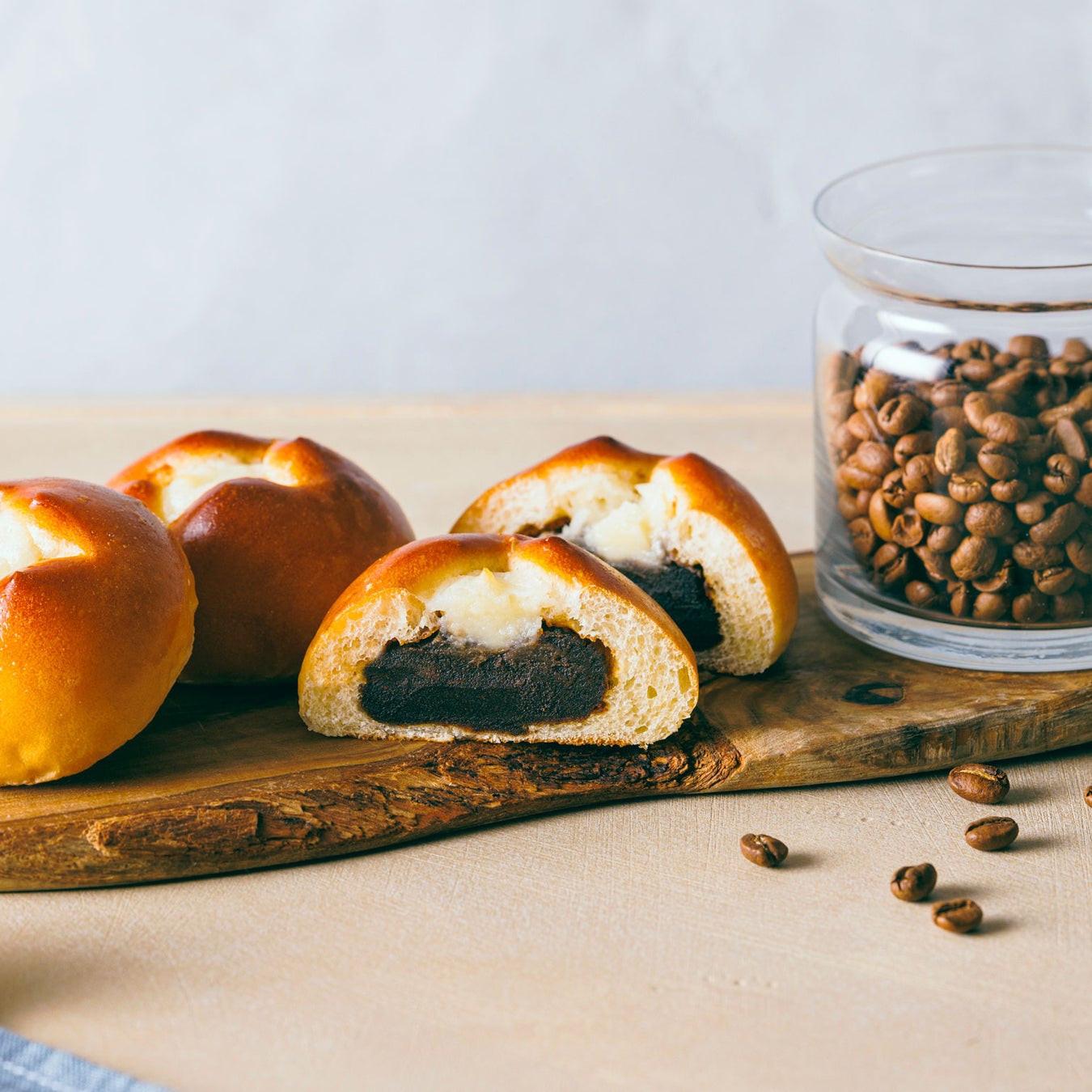 香り高いコーヒーあんを酒種生地で包み、ミルク風味のペーストをトッピングしました。コク深くもまろやかな味わいのコーヒーあんぱんです。
