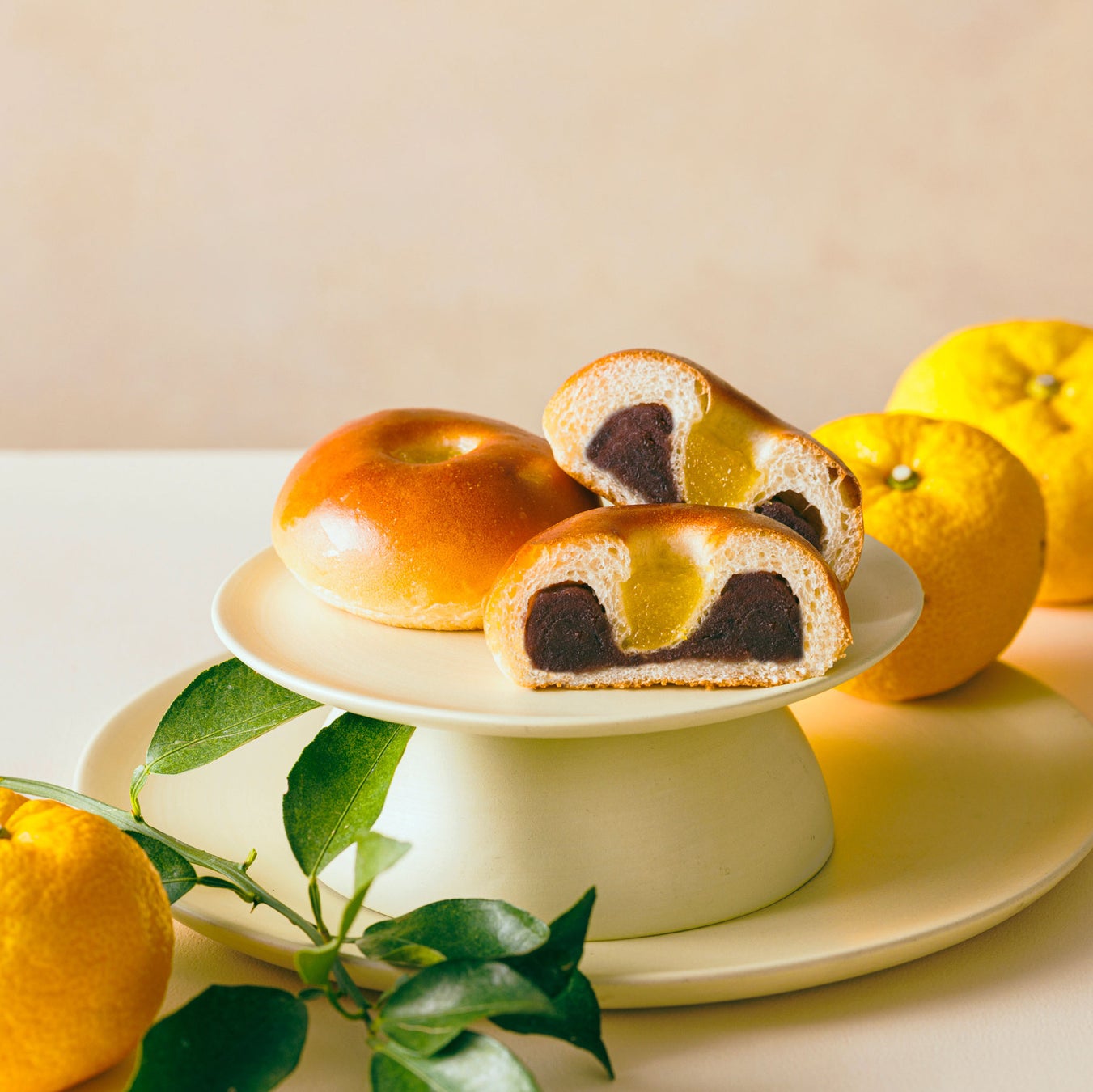 ゆず入りのこしあんを酒種生地で包み、彩り鮮やかなゆずジャムをトッピングしました。ゆず本来の上品な香りとほろ苦さをお楽しみください。(高知県産ゆず使用)