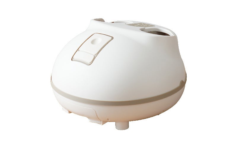 幅35×奥行38×高さ24cm、3.1kg。使い方は、本体のタンクに水を入れて本体にセット。足を入れて電源ボタンを押せばOK。10秒ほどでスチームが出て足の空間がまるでサウナのようにスチームが広がりリラックスできます。用意する水はコップ1杯(260ml)のみでOK。天面のボタンで3段階の温度切り替えが可能、強約48度、中約45度、弱約42度。10分/20分で自動で電源が切れるオフタイマー機能搭載。ポプリや漢方を入れて使うことも可能。足の底面には足を刺激できる突起やロー