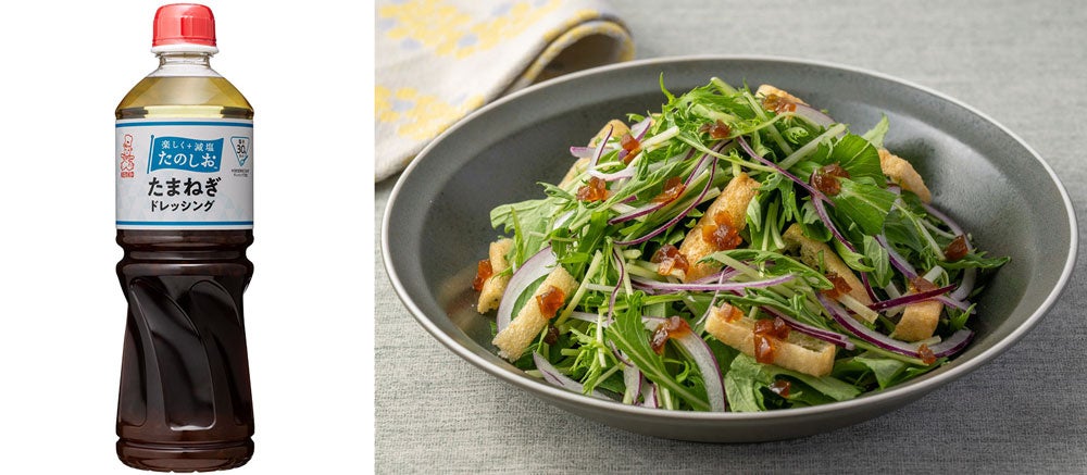 「たのしお」は、低塩・減塩ニーズが高まる中で、いつもの食事に取り入れるだけで気軽に、自然に減塩できて、美味しいからこそ選びたくなるような商品を提供したいという想いから2025年7月に立ち上がったブランドです。和惣菜に続く第二弾として、ドレッシング2品を発売します。当社従来品と比較して、塩分30%カットを実現。素材の旨味をいかした満足感のある味わいで、減塩であることを感じさせない自然な美味しさに仕上げました。シンプルで使いやすい定番テイストをラインナップしました。
