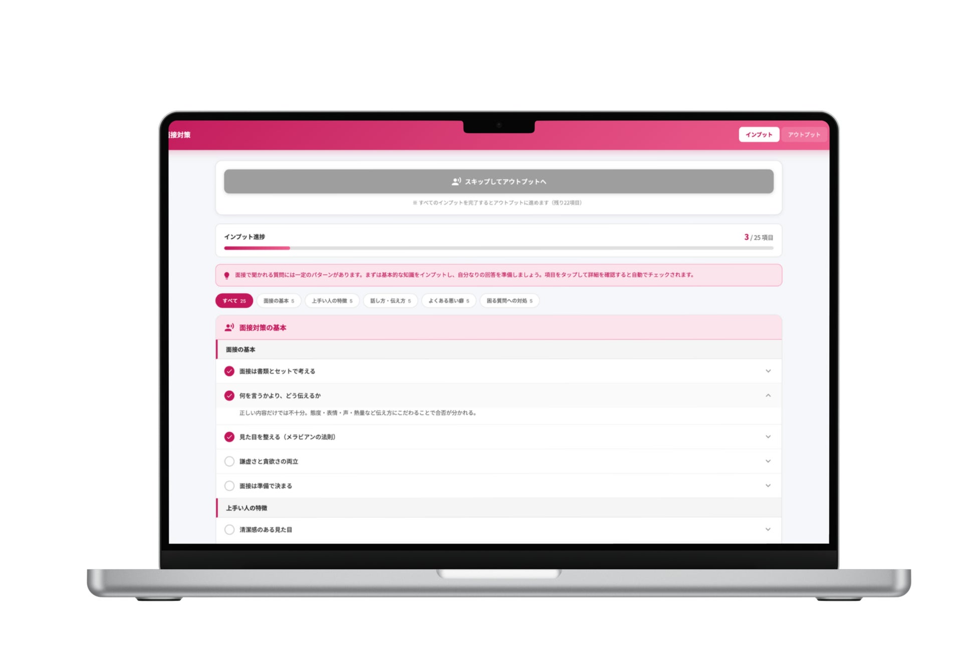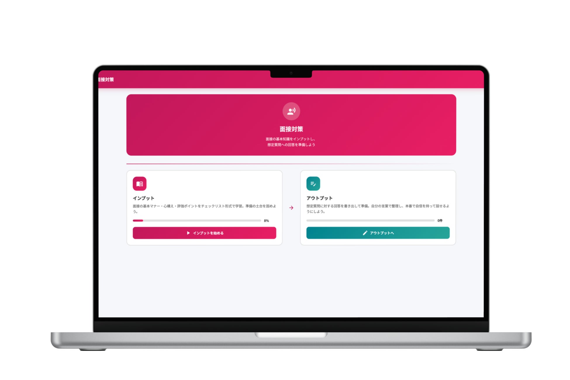 面接対策を“システム化”することが合格率向上の鍵であると考え、本機能の開発に至りました。