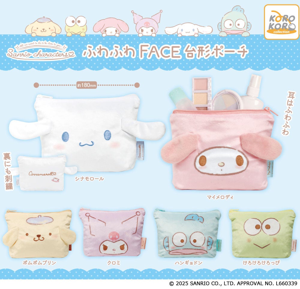 サンリオキャラクターズの「ふわふわFACE台形ポーチ」がカプセルトイに登場!ほんわかパステルカラーに心ときめく♪