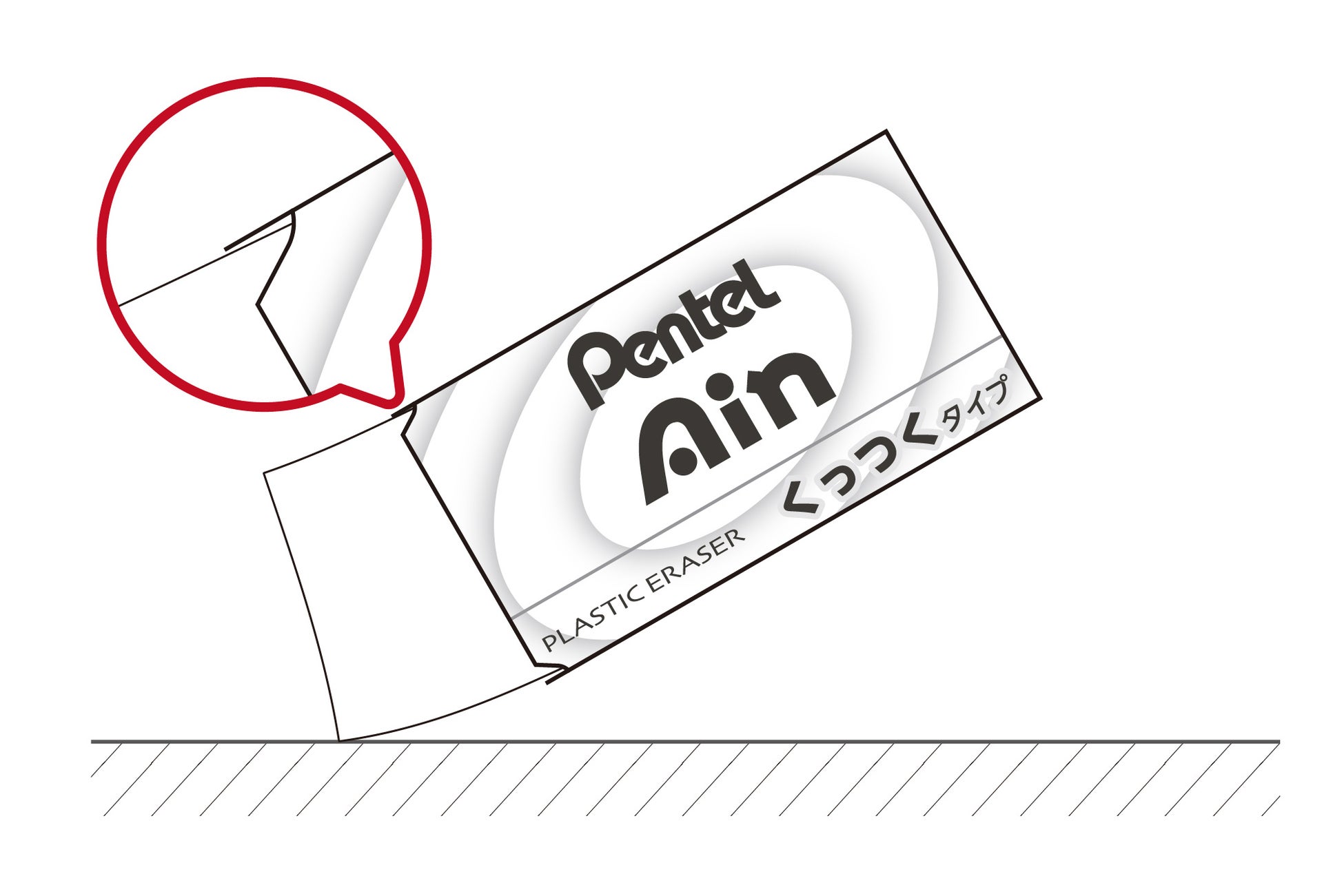 今回発売する「Pentel Ain(ぺんてるアイン) 消しゴム くっつくタイプ」は、新規特殊PVC(ポリ塩化ビニル)の配合により、消しくずが散らばらず、まとまって消しゴム先端にくっつく消しゴムです。消しくずを集める手間なく、つまんで簡単に片づけることができます。