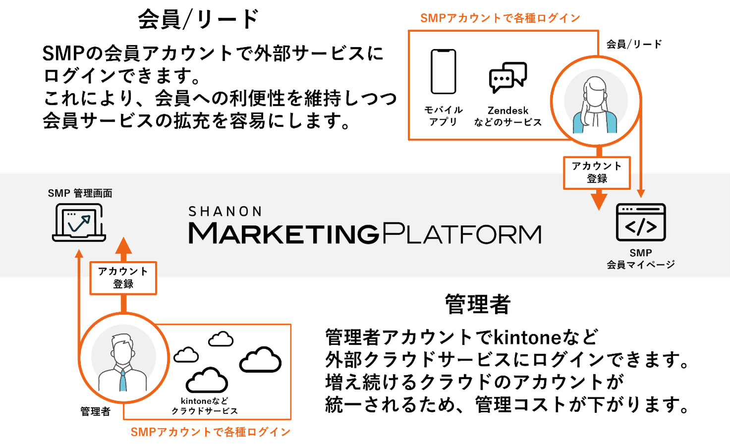 本機能により、SMPの管理者アカウントとリードアカウント(会員アカウント) で、他のサービス(主にクラウドサービス)へのログインが可能になります。