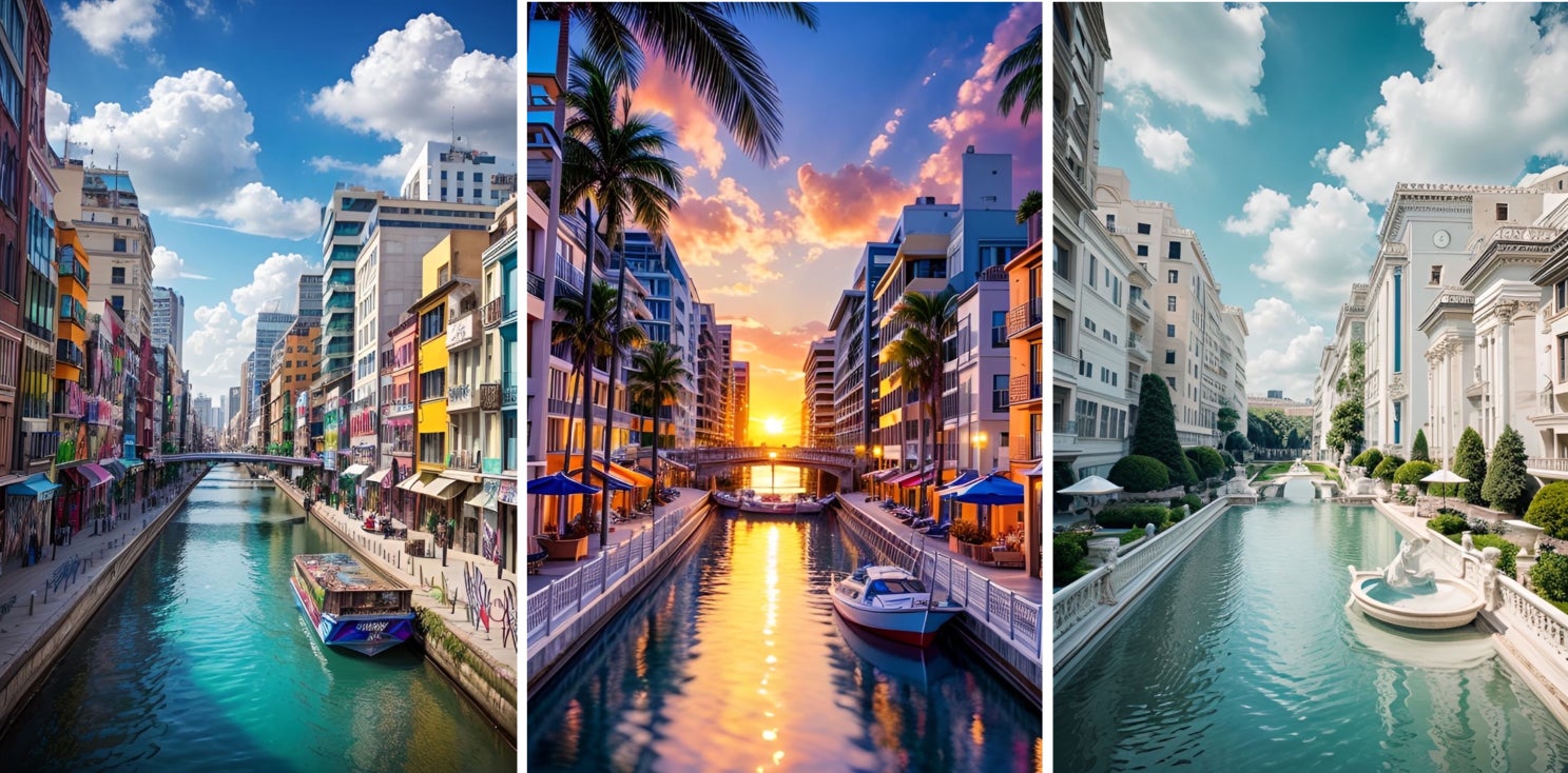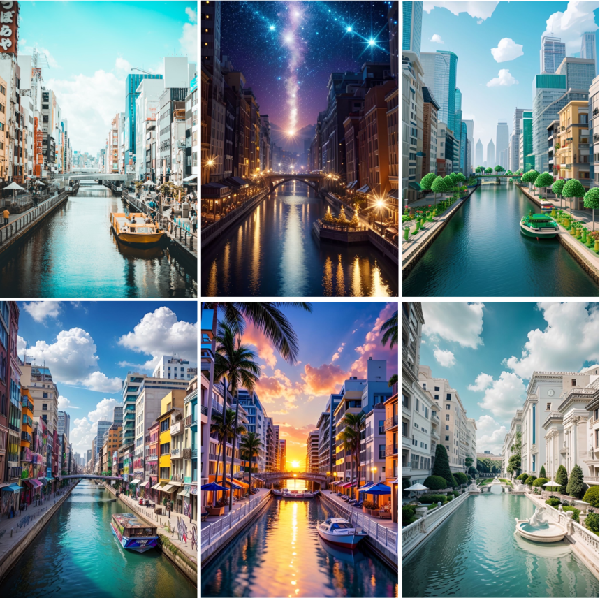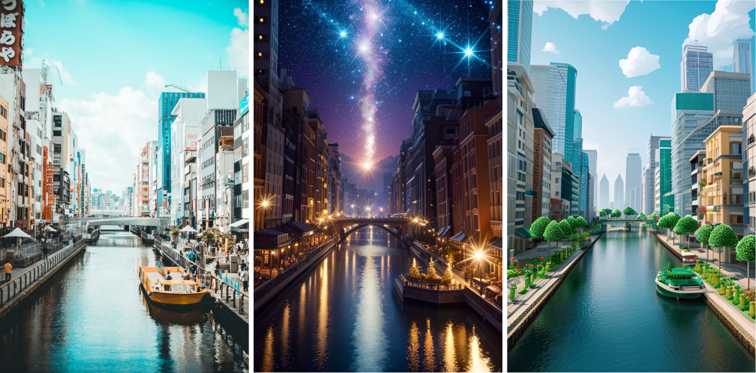 生成AI技術により、風景の建物などを残したまま、季節や周りの環境を自由に変えることができます。ジャングルや幻想的な世界など様々なスタイルを選んで、エモい写真を作り出せます。