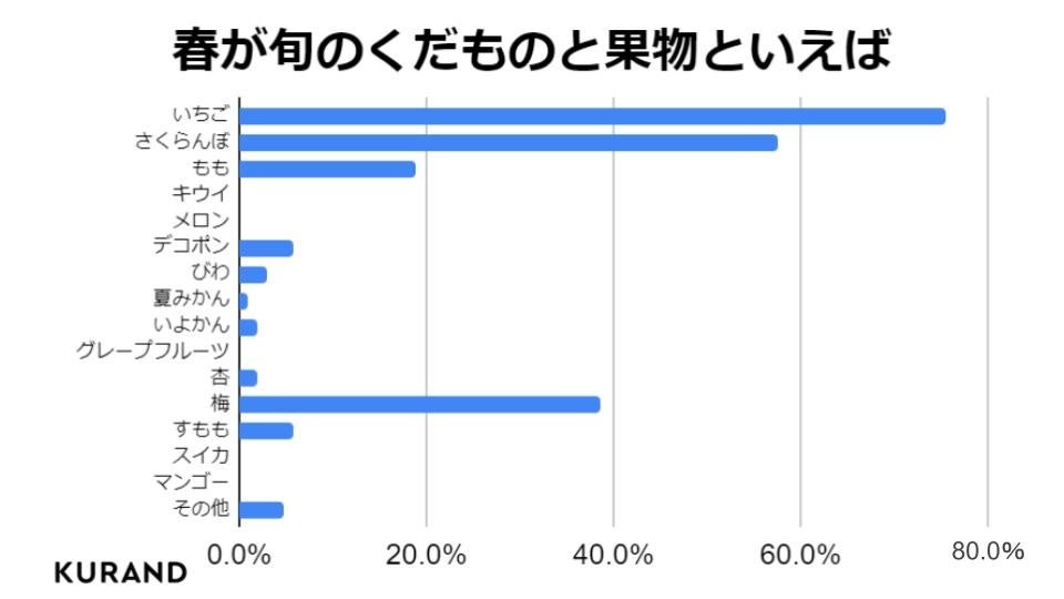 - 結果②:春が旬の果物といえば「いちご」が75.5%