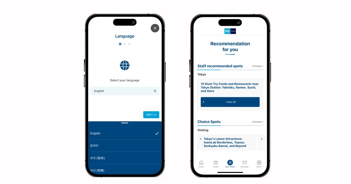 ユーザーがアプリの初回ご利用時に登録した「行きたい場所」の情報に応じて、おすすめの観光情報を出し分け表示する機能を搭載。ユーザーが知りたい地域に関する観光スポットや飲食店情報など、日本の旅に役立つ様々な情報へ簡単にアクセス可能です。