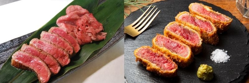 右:北海道産牛フィレの牛カツ <玉川精肉店>