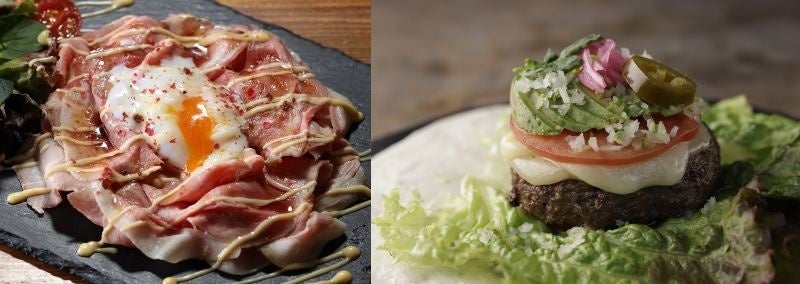 右:メキシカンタコスバーガー <BOSQUE by FONDA DE LA MADRUGADA>