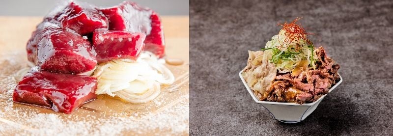 左:#焼かずにそのまま食べるレバー <銀座焼肉にく﨑>