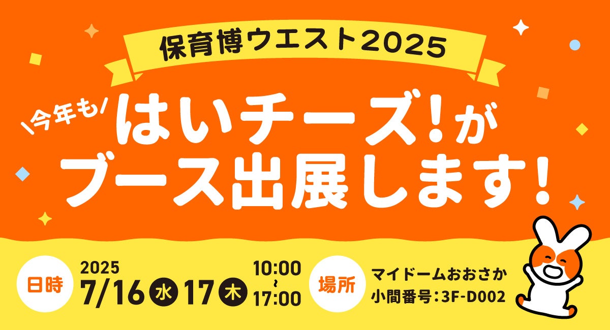 写真と食の力で子どもの幸せを創ることを目指す総合保育テックサービス「はいチーズ!」を提供する千株式会社(本社:東京都千代田区、代表取締役社長 千葉伸明、以下 当社)は、7月16日(水)、17日(木)に開催される「保育博ウエスト2025ー保育・教育ビジネス&サービスフェアー」に出展いたします。
