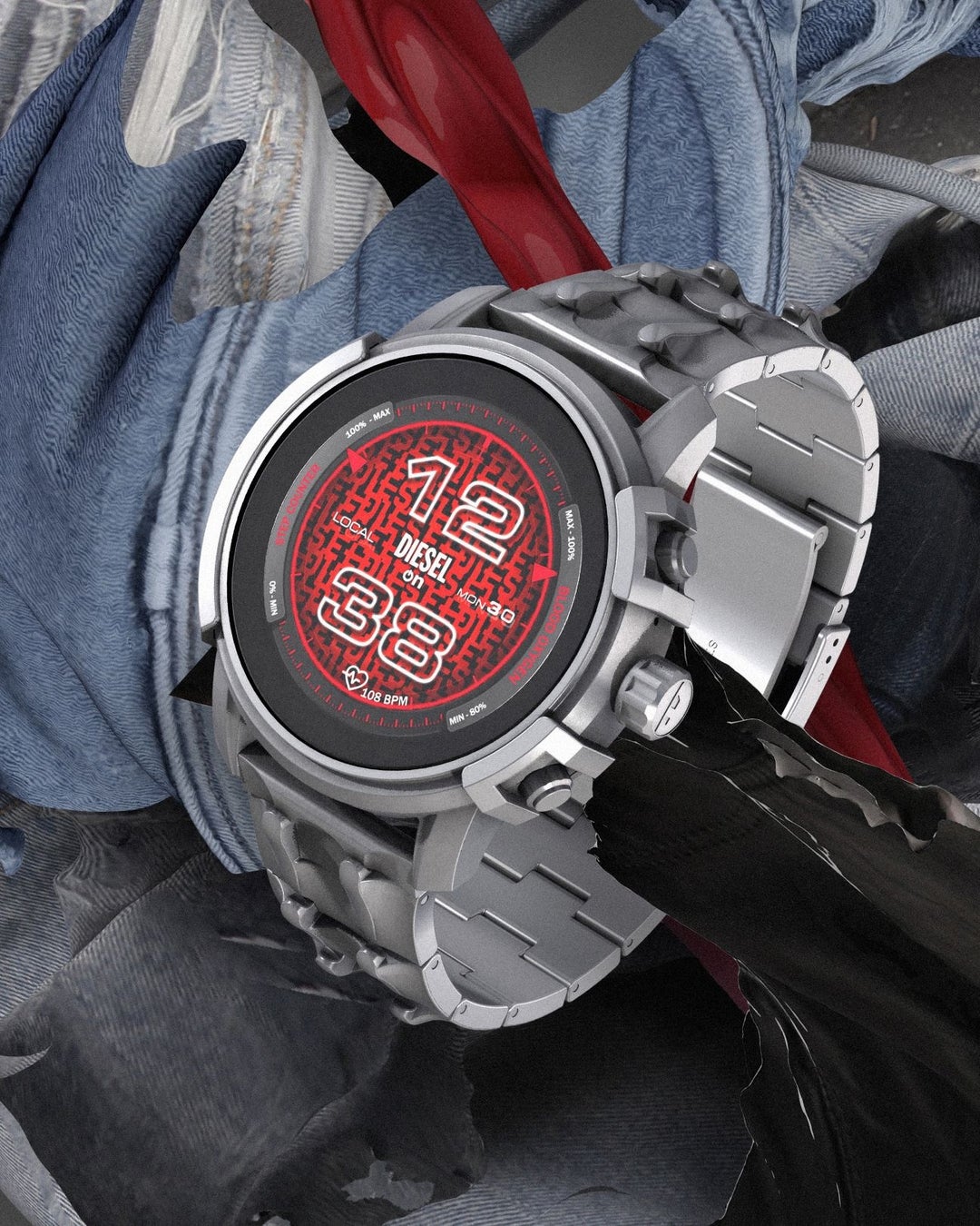 THE GRIFFED GEN 6は、車やバイクのロールバーからインスパイアされたクリップが特徴の、インダストリアルなデザイン要素をもつスマートウォッチです。THE GRIFFED GEN 6は全4型、ケースにはシルバー/ブラック、ガンメタル/ブラック、シルバーなどのカラーバリエーションがあり、ブレスレットはステンレススティールや、ディーゼルロゴのナイロン×シリコンストラップ、レザーストラップの組み合わせをラインアップしています。