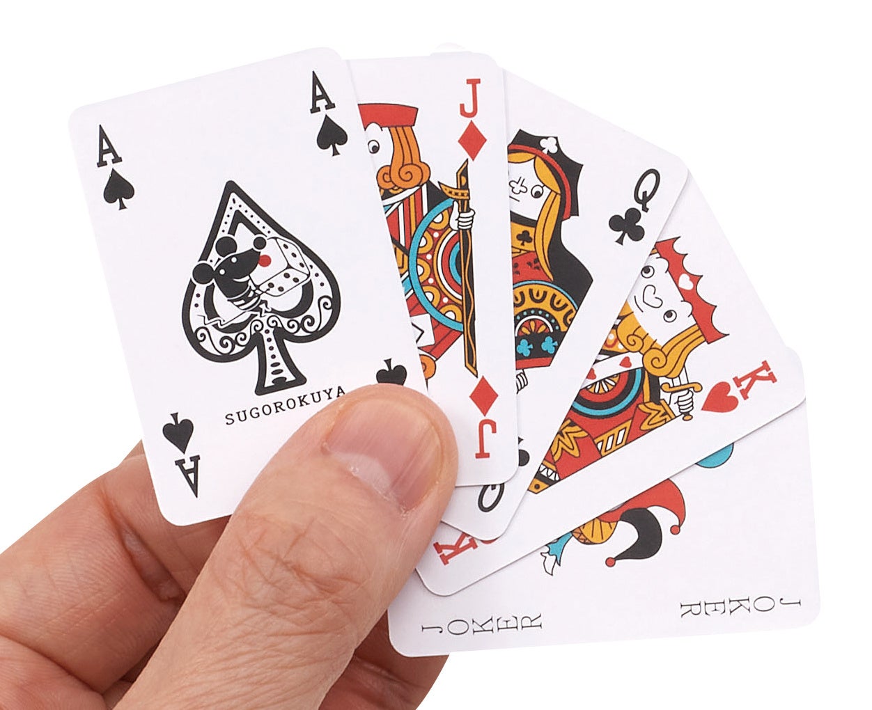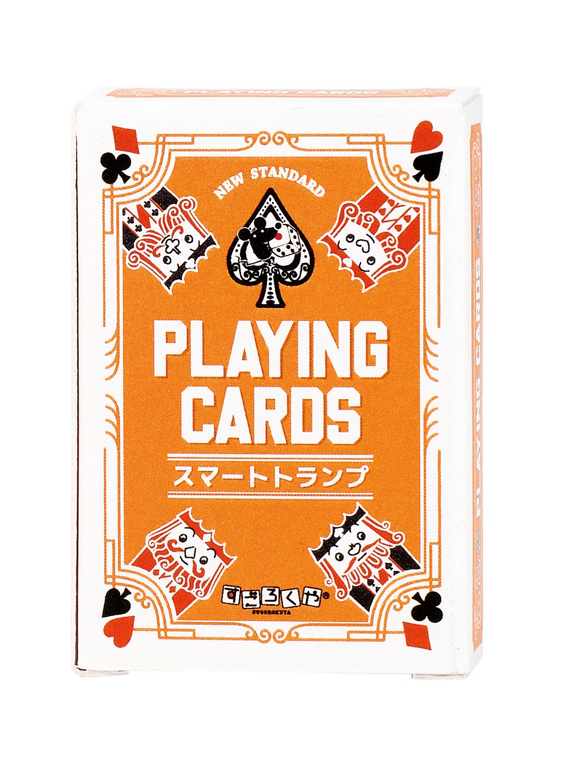 複数枚のカードを扇状にずらして持ったとき、利き手が左右どちらであってもすべてのカードの数字とマークが確認しやすいようにカードの四隅に数字とマークを配置するなど、遊びやすさを考慮したデザインのトランプです。