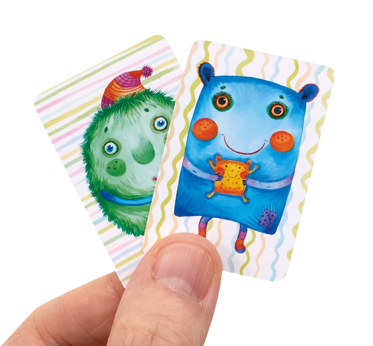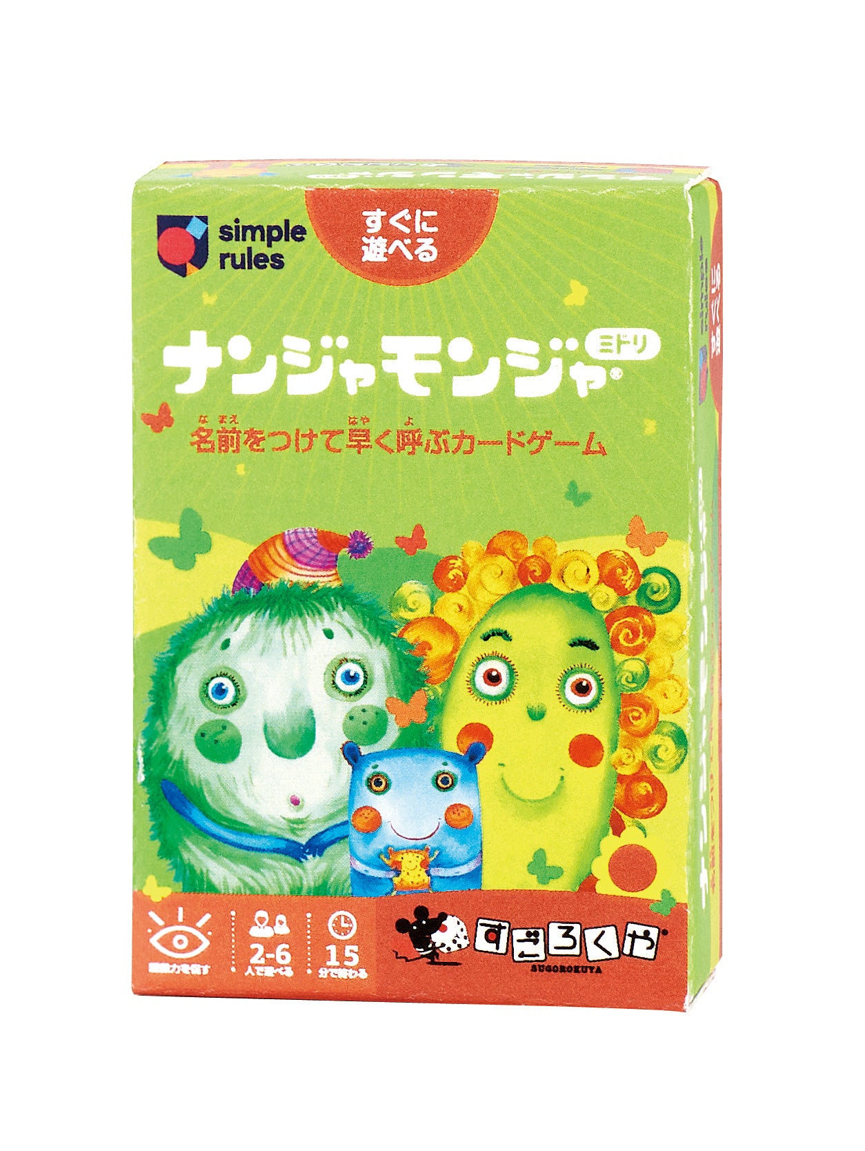 頭と手足だけの謎生物「ナンジャモンジャ族」が描かれたカードをめくるたびに、そのプレイヤーが名前を付け、以降めくって同じカードが出てきたら名前をいち早く叫ぶことでカードを獲得、それを集めた枚数を競うゲームです。