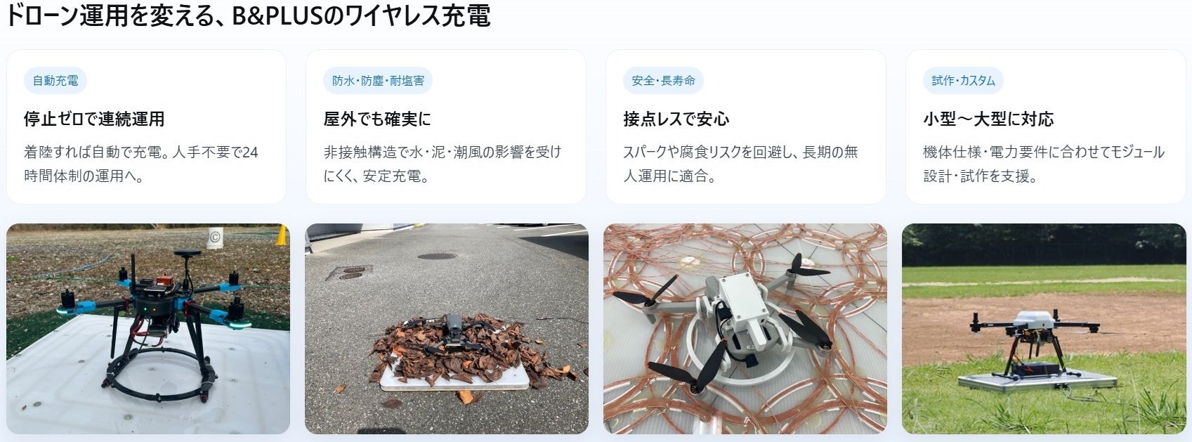 B&PLUS is expanding its wireless power transfer technology across a wide range of applications, starting with drone charging systems.