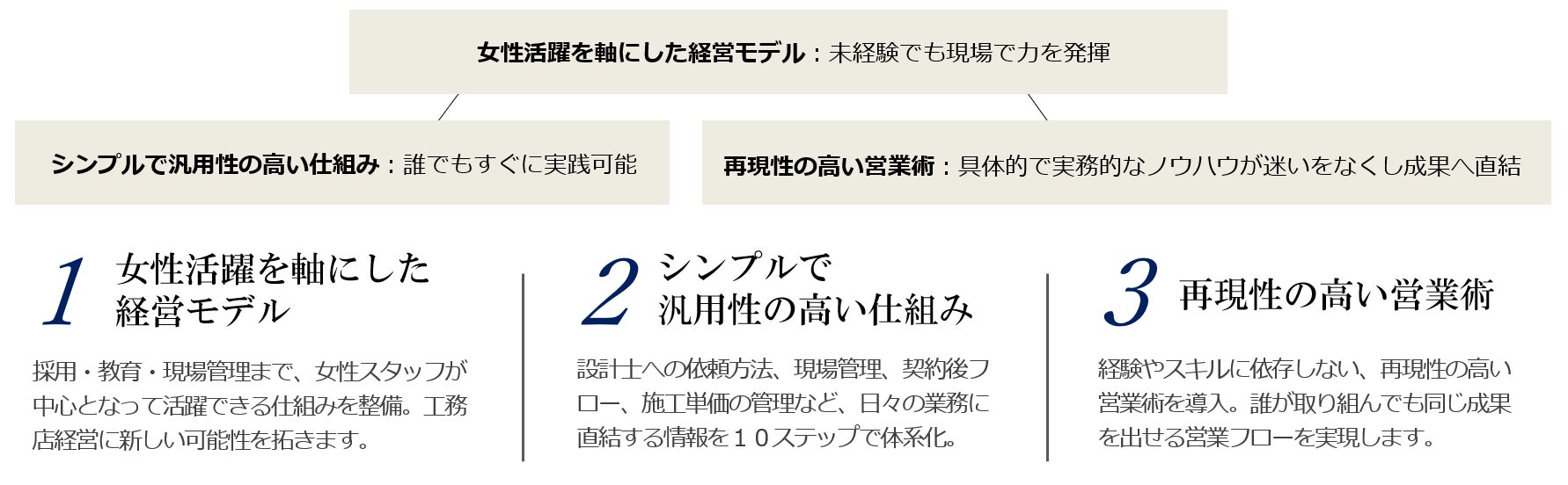 住宅性能に関する法規の厳格化などにより、工務店の業務量がこれまで以上に増え、多くの工務店が受注減や人材不足に悩まされています。そんな現状を打開する鍵となるのが「女性スタッフの活躍」です。家づくりの意思決定には女性が関わることも多いため、工務店経営においても女性を軸とした組織づくり/仕組みづくりをすることで、より顧客に寄り添った提案ができるようになります。