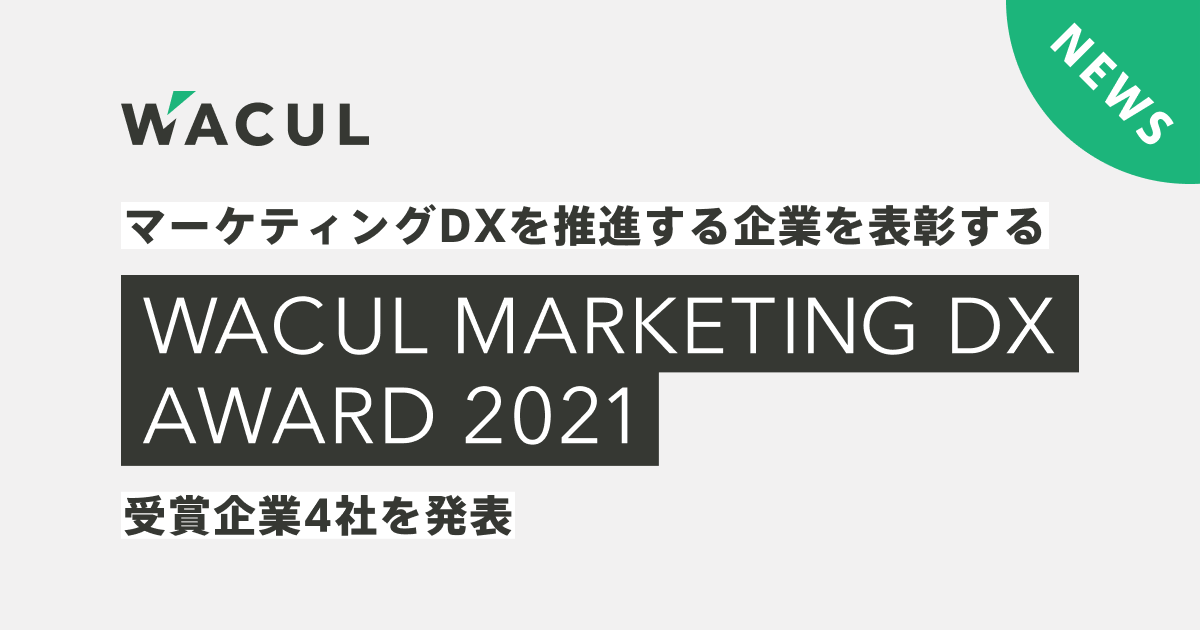 データ分析ツール「AI アナリスト」でマーケティングDXを自動化する株式会社WACUL(読み:ワカル、代表取締役CEO:大淵 亮平、証券コード:4173、以下WACUL)は、2022年1月26日(水)、マーケティングDXに積極的に取り組む企業と担当者を讃える『WACUL Marketing DX Award 2021』の受賞企業を発表いたしました。