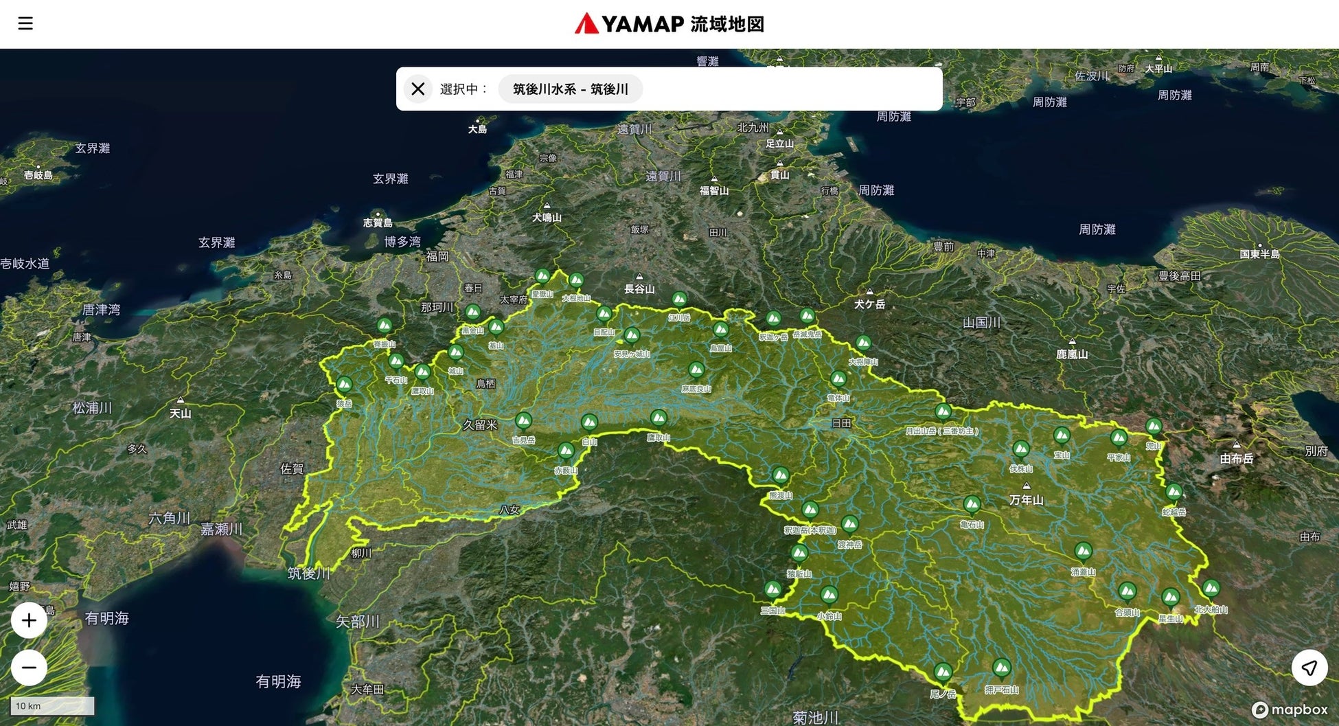 概要:「YAMAP 流域地図」とは、私たちが暮らす場所を行政区分ではなく、水の流れを基礎とした“流域”で表現した地図です。山・川・街・海を含めた大地の広がりである流域を、地図上で視覚化し、山を含めた自然資本の価値を分かりやすく伝えることに役立ちます。また、流域全体で治水対策を行うなど防災減災での活用も想定した地図になります。