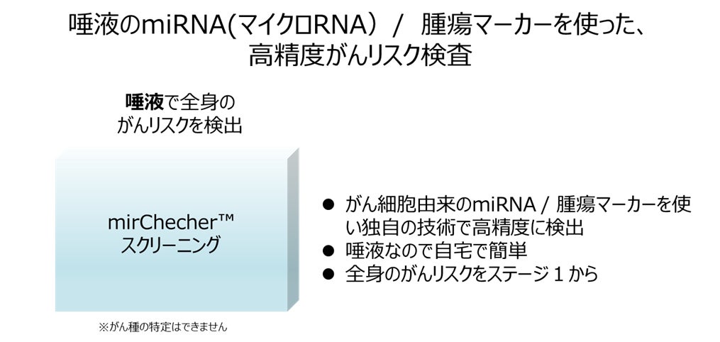 同社の特色は、細胞同士が情報を伝え合うための「アンテナ」のような役割を持つ糖鎖に着目し、がん細胞由来物質に特有の糖鎖を補足・分離できる独自技術により、高精度のがんリスク検査を可能にしている点です。唾液による検査の為、自宅で簡単に検査ができ、全身のがんリスクをステージ1から検出するため、早期のがん診断が可能です(がん種の特定はできません)。同社は今後、販売パートナーとの連携により、一般ユーザーに向けてドラッグストアで購入できるがん検査キットの提供をスタートさせていく計画となっています。