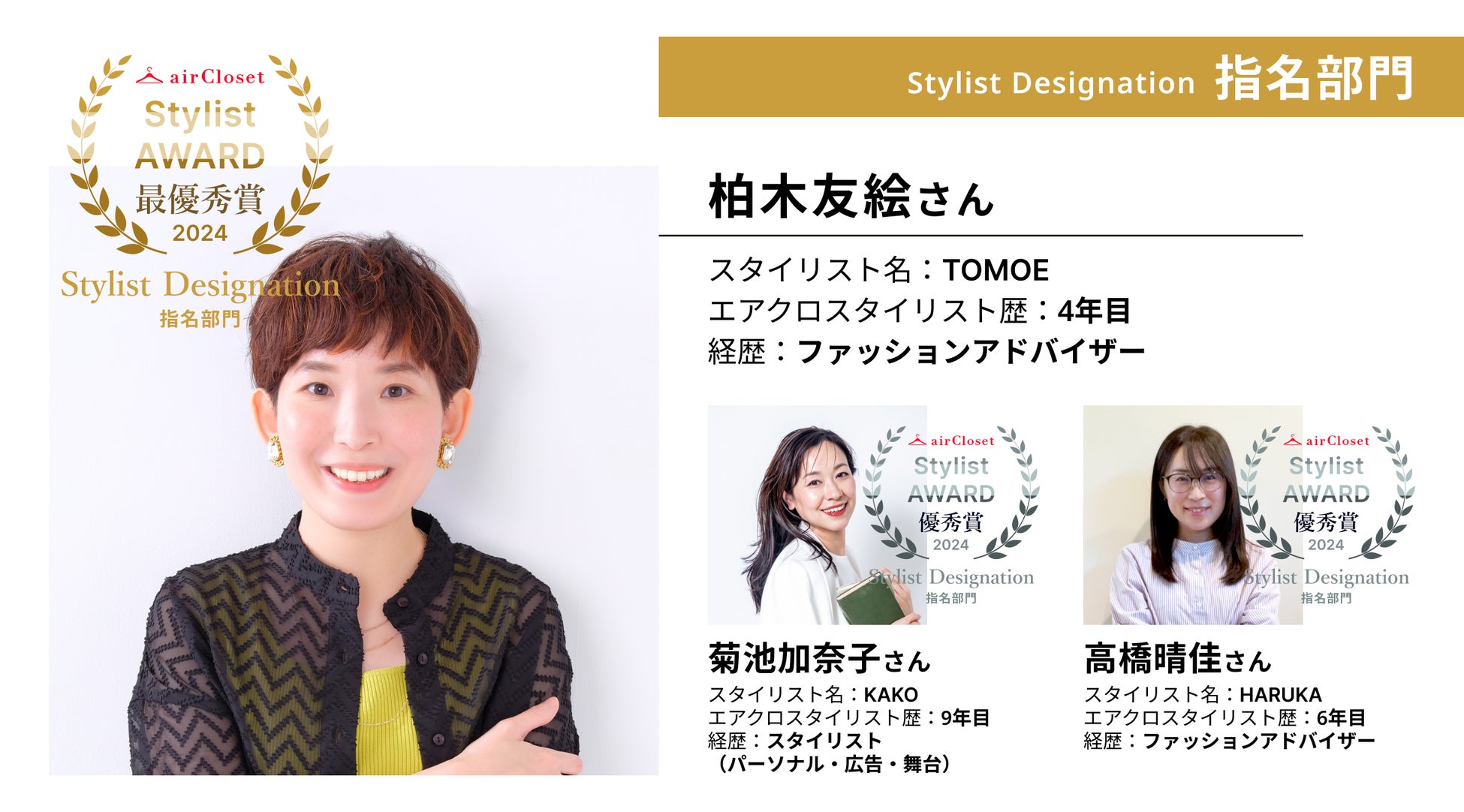 『airCloset(エアークローゼット)』が、年間でお客様から最も支持されたスタイリストを表彰する「airClosetスタイリストアワード2024」を発表